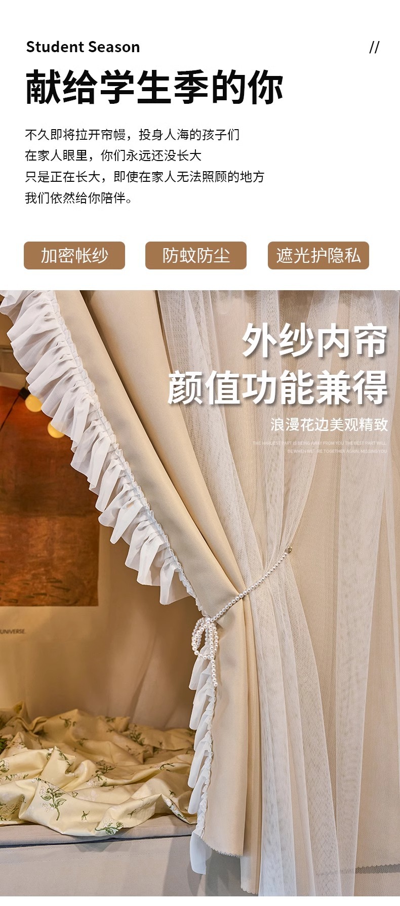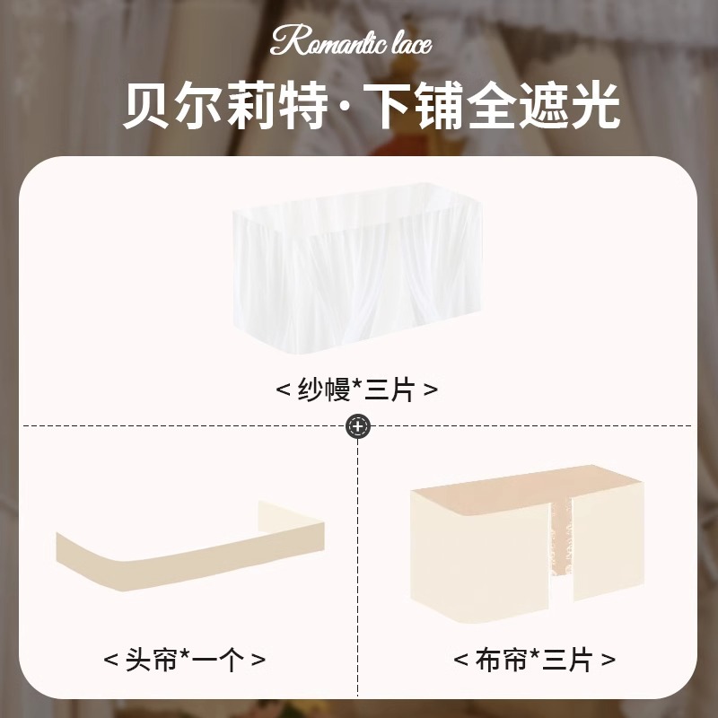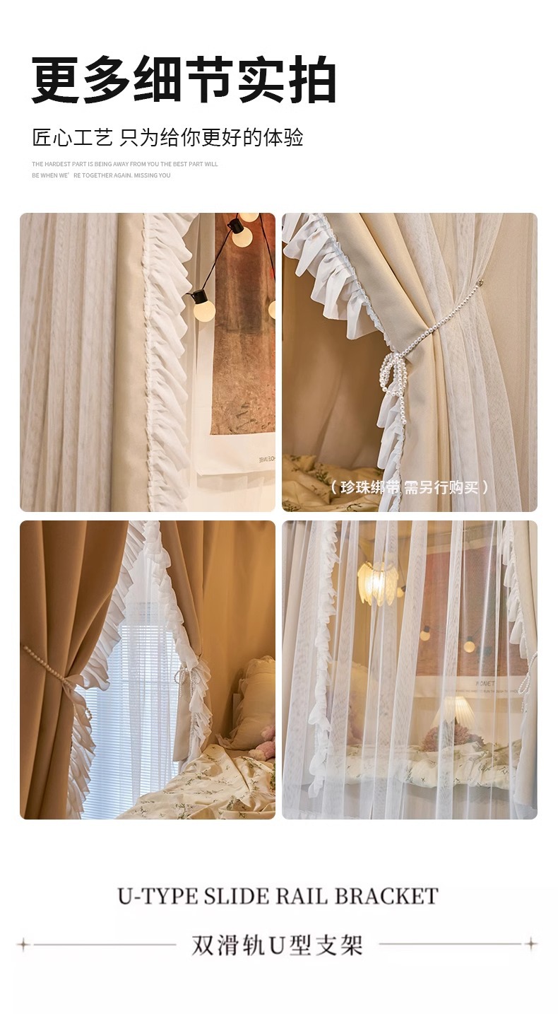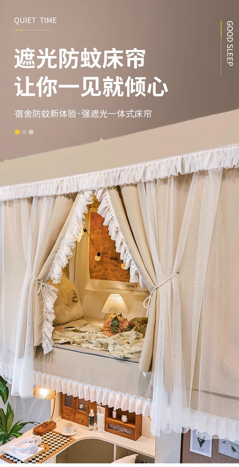 공주 바람 침대 커튼 프랑스 스타일 침대 커튼 대학 기숙사 U 자형 트랙 상부 침대 하부 침대 음영 모기장스토어 가기