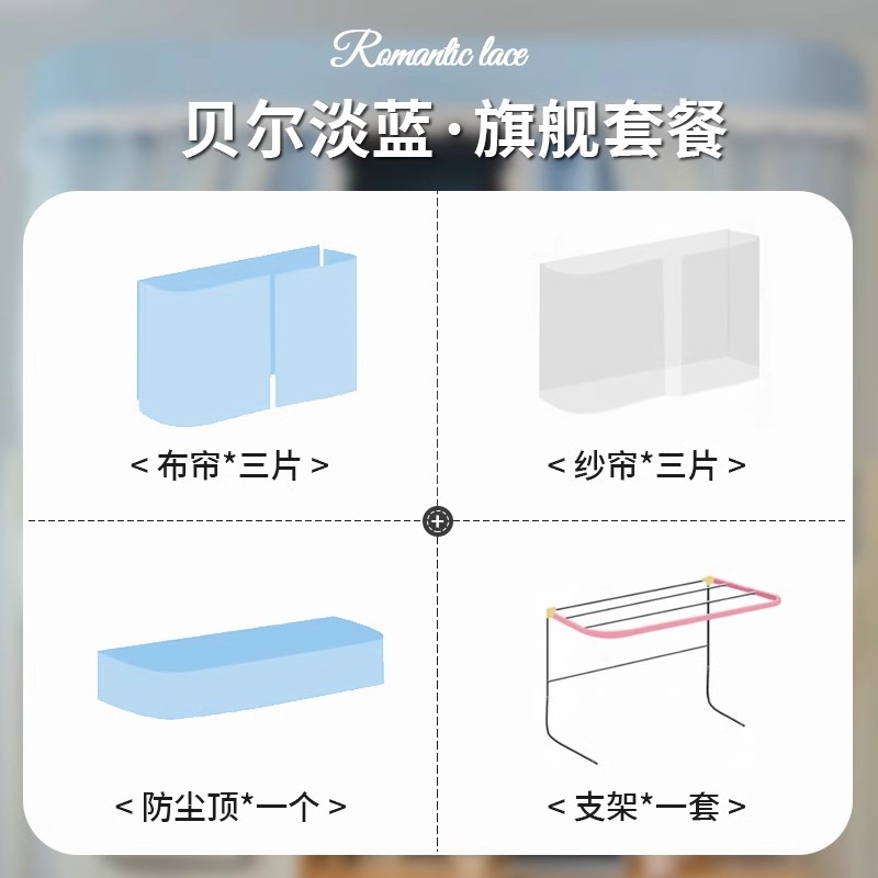 • [벨 라이트블루 스퀘어] 커튼 3개 + 실 3개 + 탑 + 브라켓