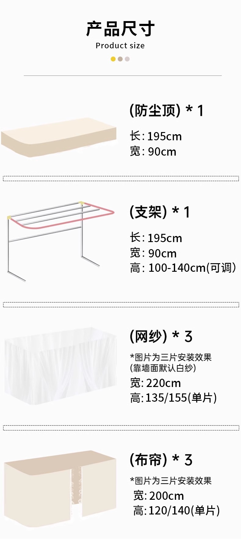 • [벨리 스퀘어] 커튼 3개 + 탑 + 브라켓 [모기장 제외]