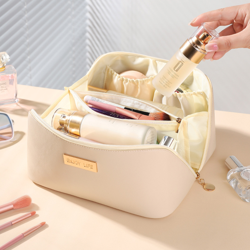 대용량 화장품 가방 PU 가죽 고급 휴대용 저장 가방 다기능 여행 세척 가방 스킨 케어 보관스토어 가기