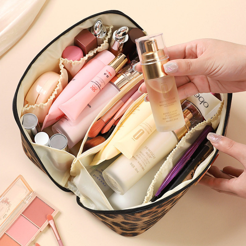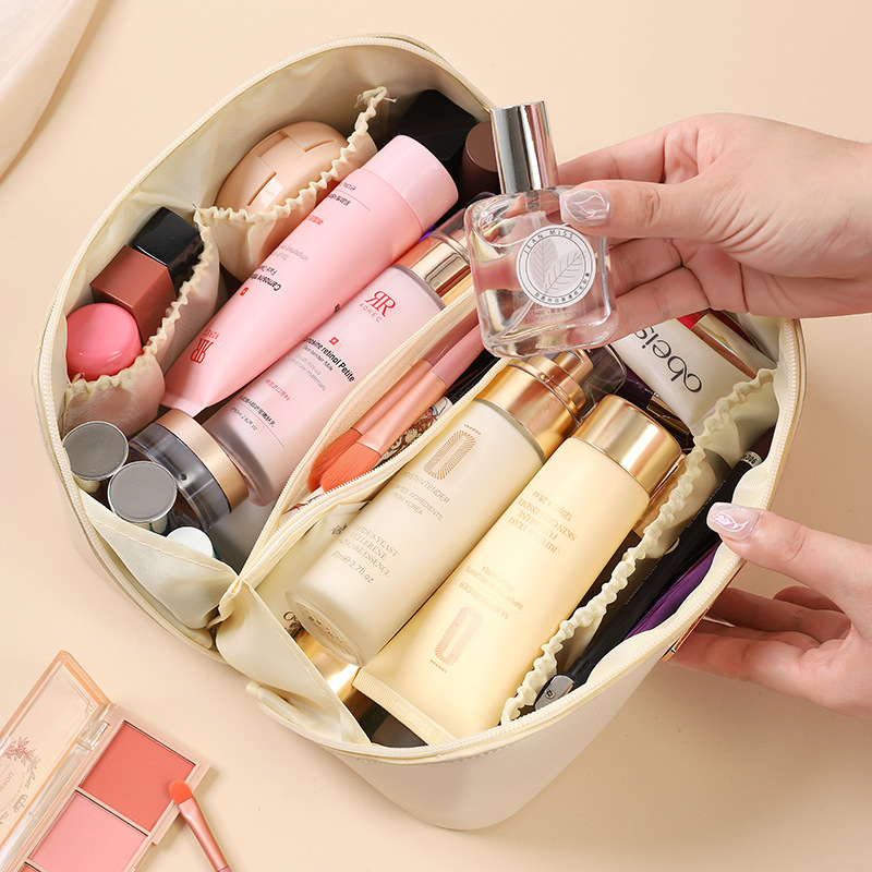 대용량 화장품 가방 PU 가죽 고급 휴대용 저장 가방 다기능 여행 세척 가방 스킨 케어 보관
