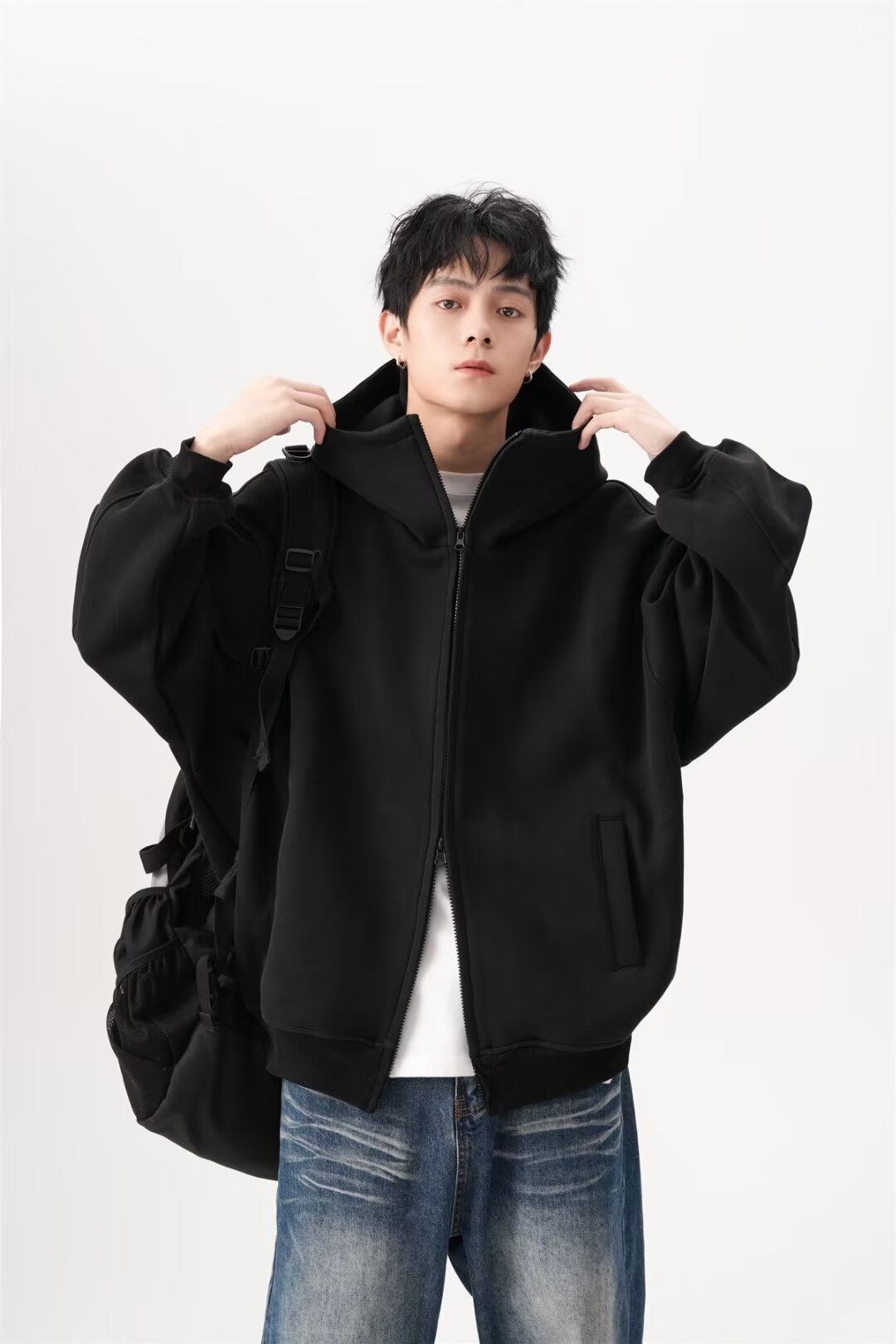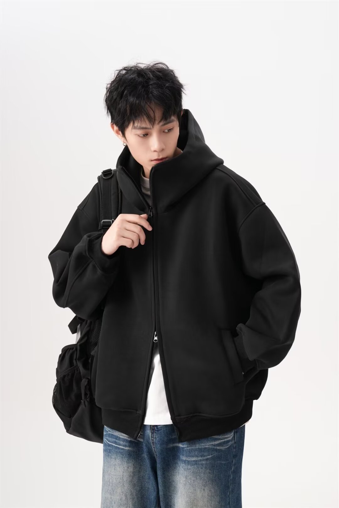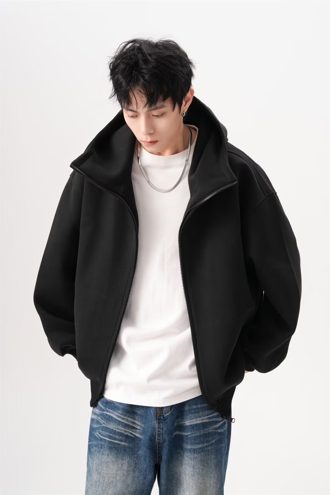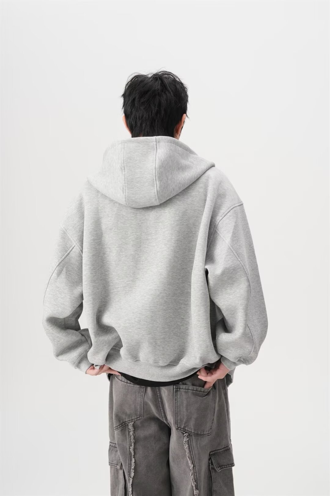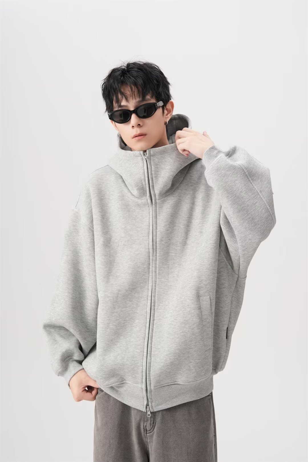 아메리칸 스타일 레트로 프로필 에어 레이어 그레이 후드 기모 스웨터 재킷 남성과 여성을위한 가을과 겨울 느슨한 무거운 카디건 트렌디스토어 가기
