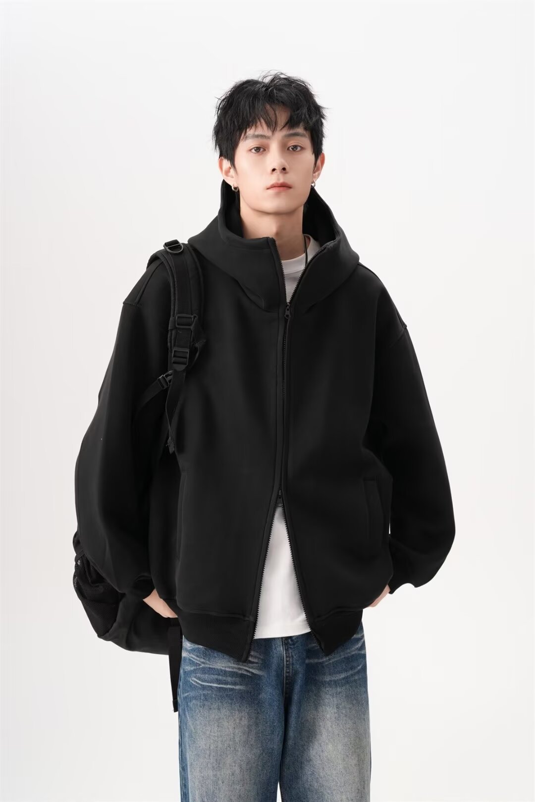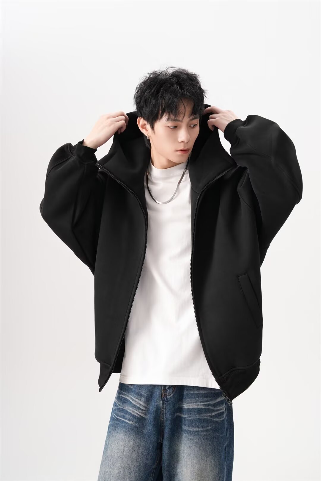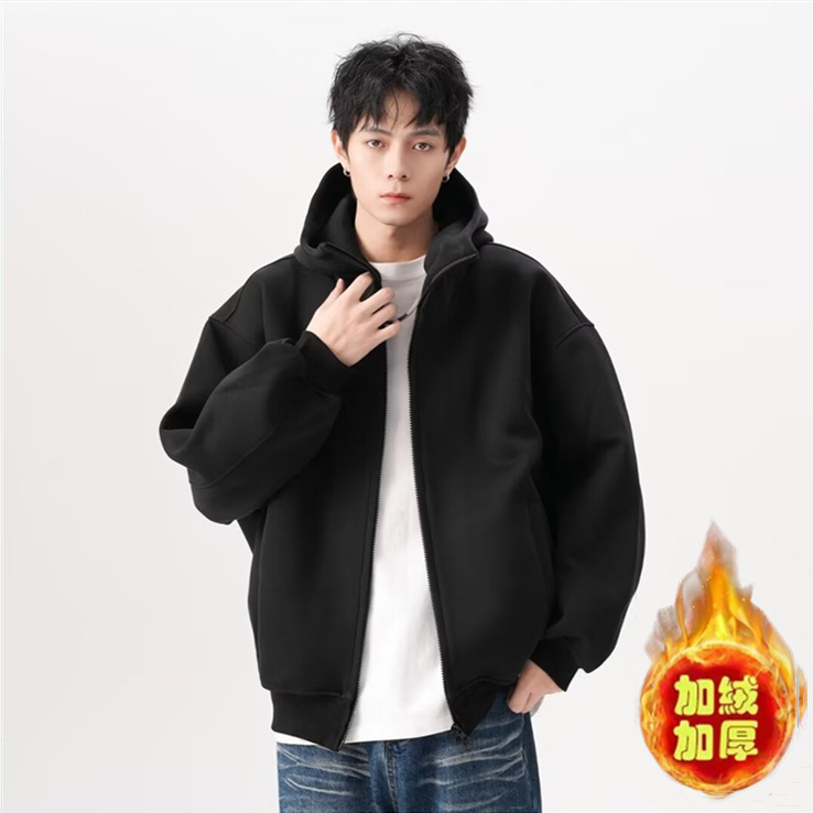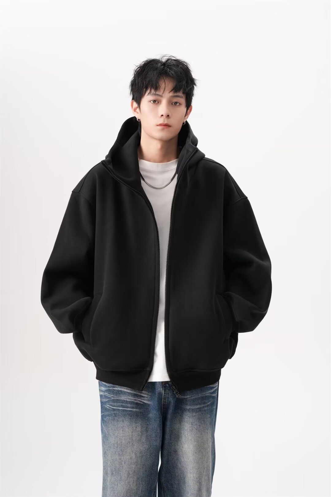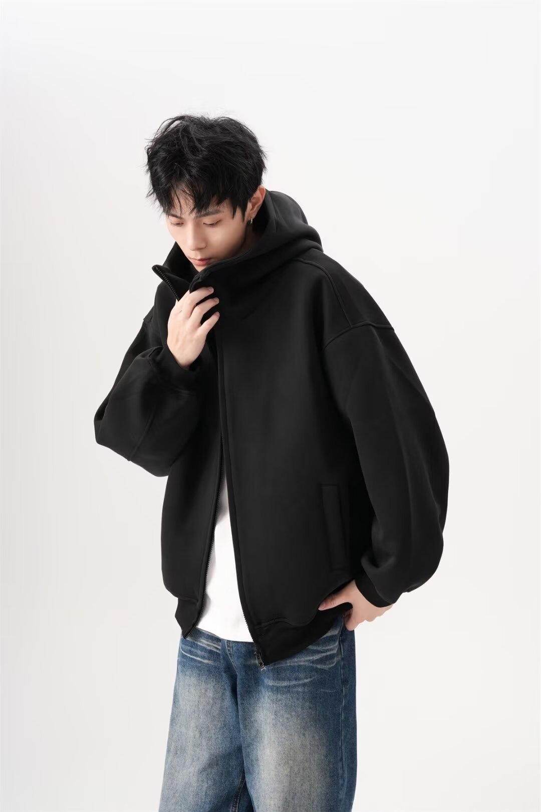 아메리칸 스타일 레트로 프로필 에어 레이어 그레이 후드 기모 스웨터 재킷 남성과 여성을위한 가을과 겨울 느슨한 무거운 카디건 트렌디스토어 가기
