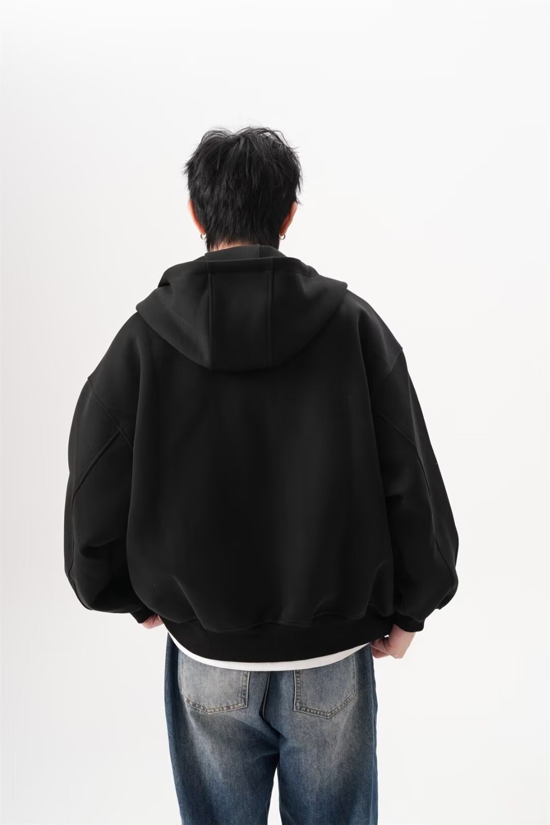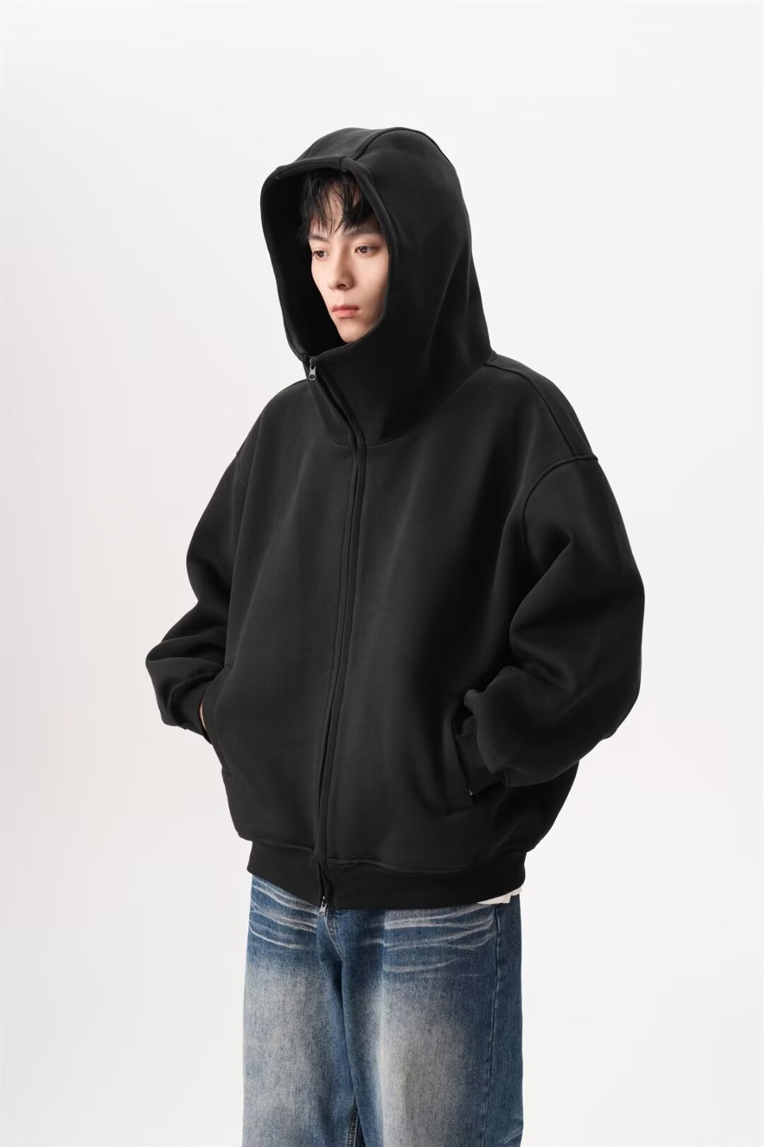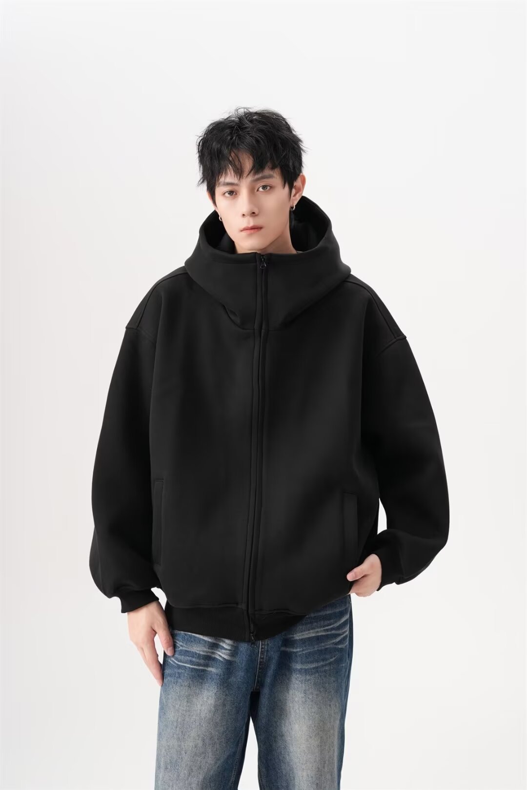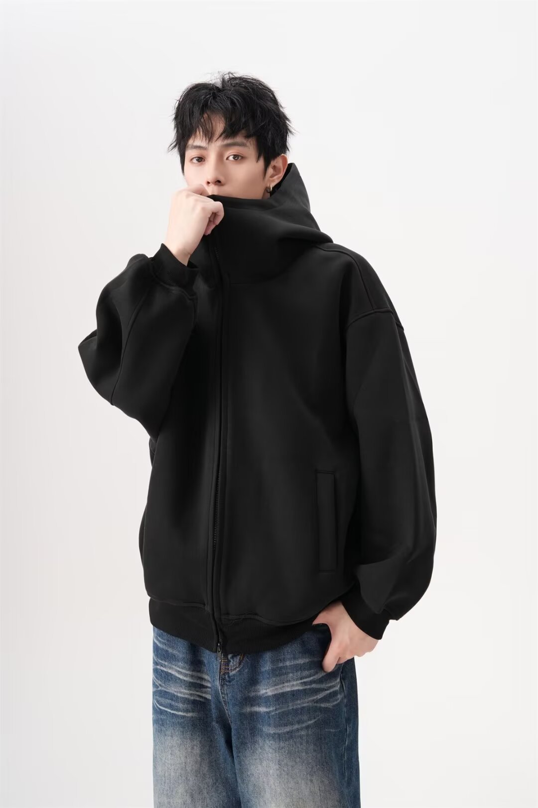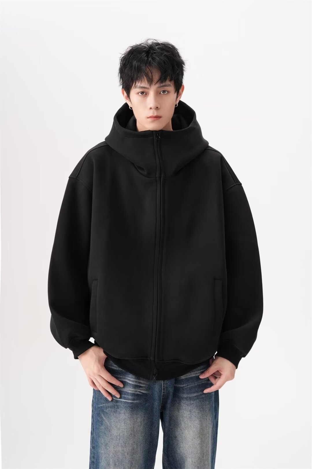 아메리칸 스타일 레트로 프로필 에어 레이어 그레이 후드 기모 스웨터 재킷 남성과 여성을위한 가을과 겨울 느슨한 무거운 카디건 트렌디스토어 가기