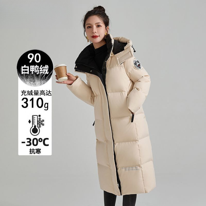 겨울 따뜻한 다운 재킷 여성의 긴 2024 새로운 겨울 두꺼운 310g 극도로 차가운 여분의 두꺼운 무릎 슬림스토어 가기