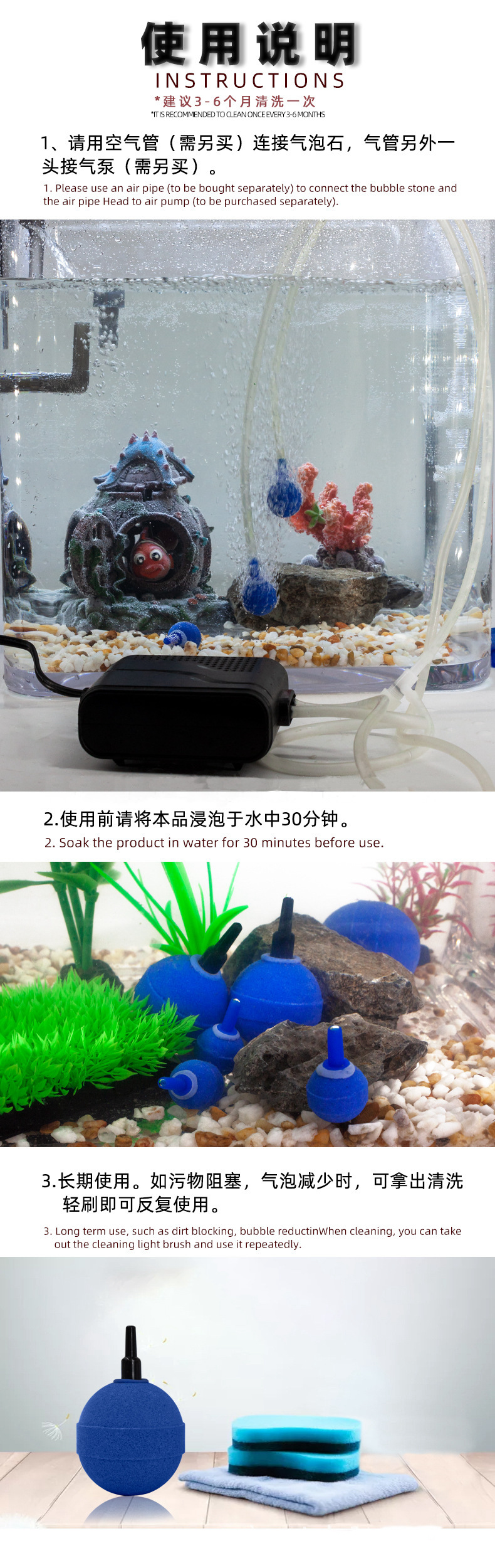 수족관 전용 어항 산소 공급 소형 블루마우스 미네랄 샌드 원형 어항 산소석 버블 스톤 열대어 수족관스토어 가기