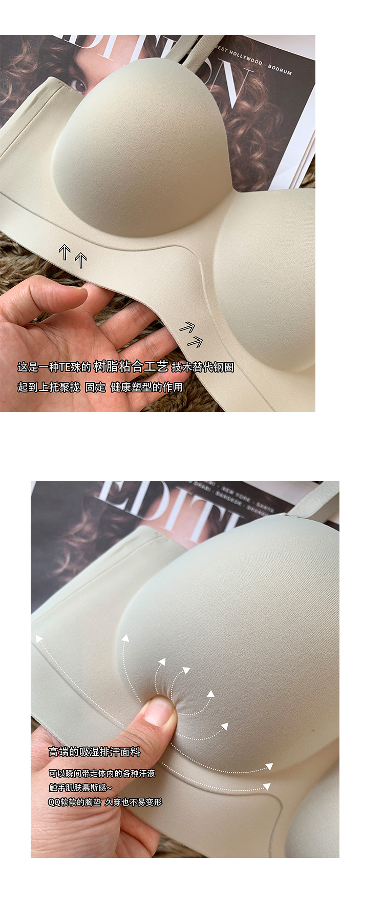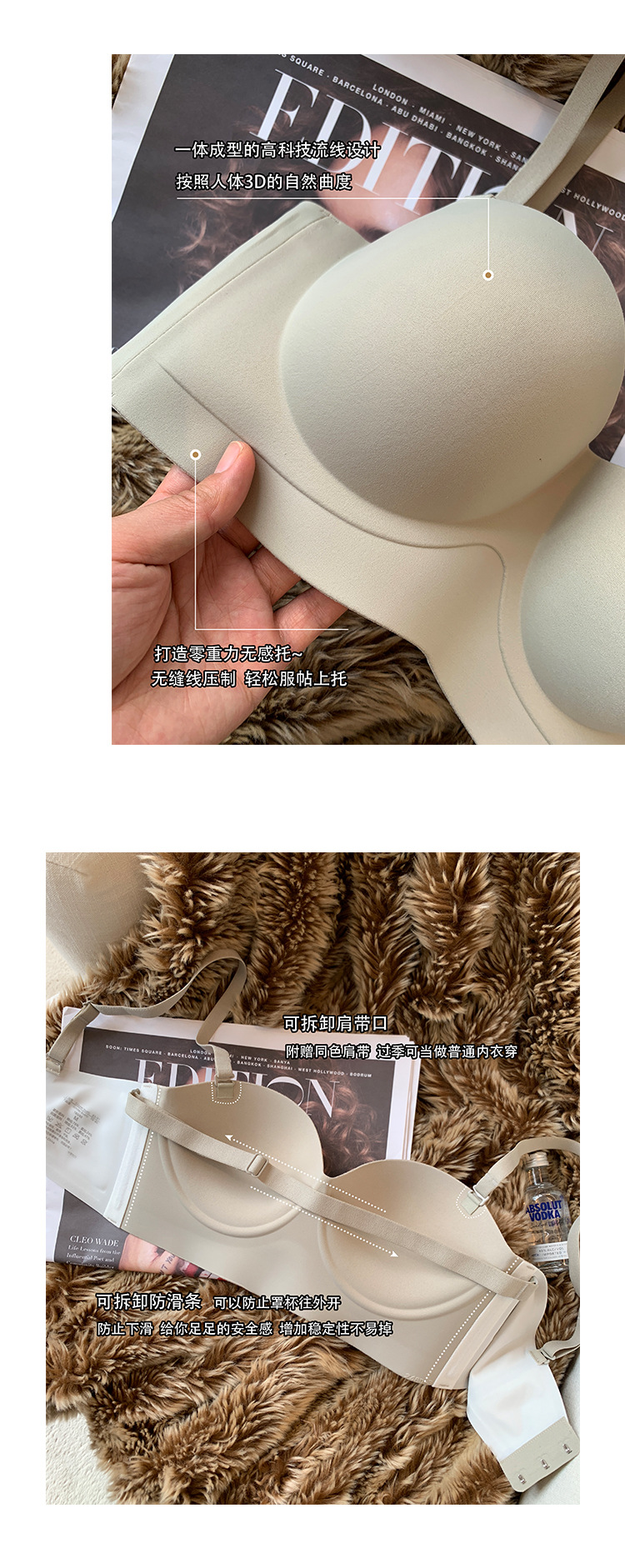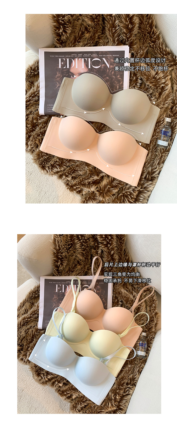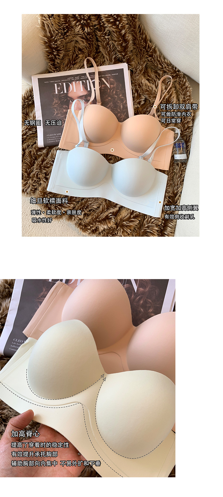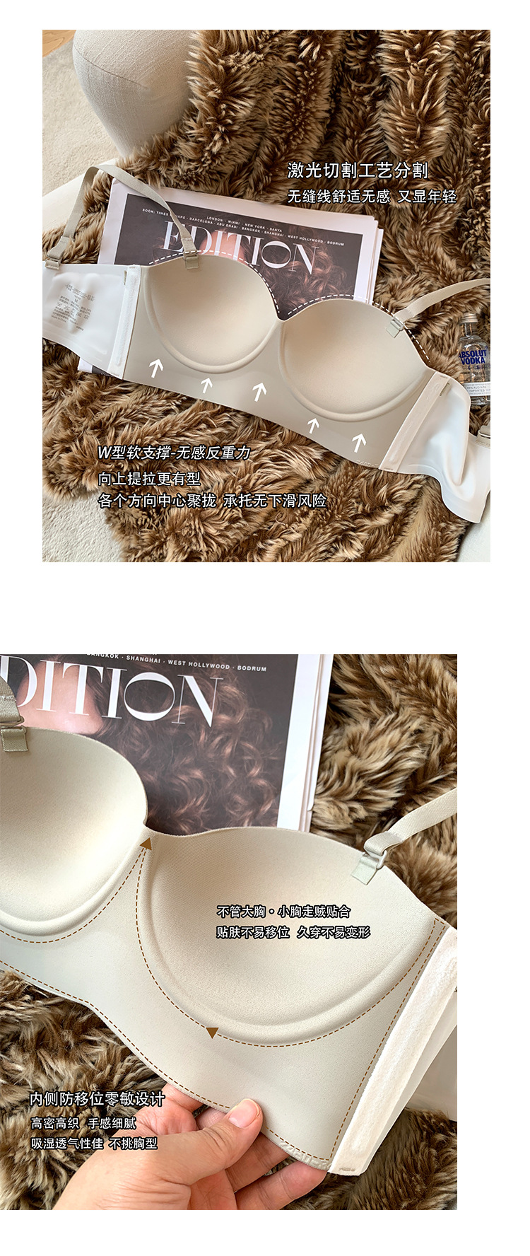스트랩리스 속옷 여성의 미끄럼 방지 작은 가슴 푸시 업 대형 스트랩리스 어퍼 얇은 두꺼운 비 스틸 링 보이지 않는 브래지어스토어 가기