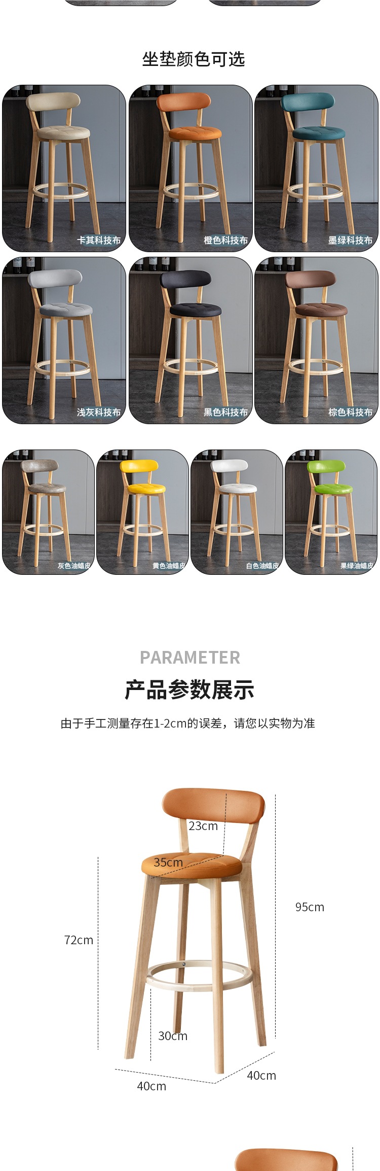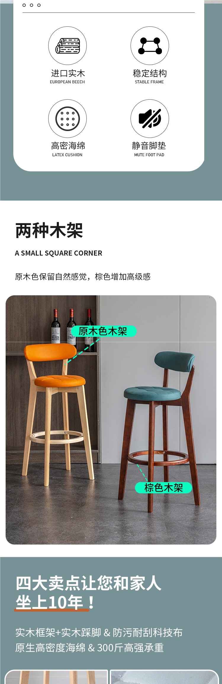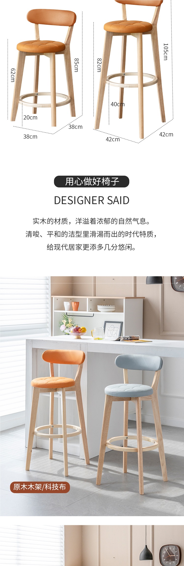 바 의자 현대 간단한 단단한 나무 높은 의자 홈 노르딕 라이트 럭셔리 바 테이블과 의자 등받이 앞 책상 계산원 높은 의자스토어 가기