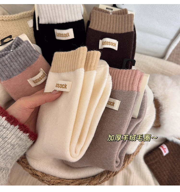 Hatesock 사이드 천 라벨 "두꺼운 플러스 벨벳 양말 어린이 양말 가을과 겨울 캐시미어 대비 양말 한글 버전스토어 가기