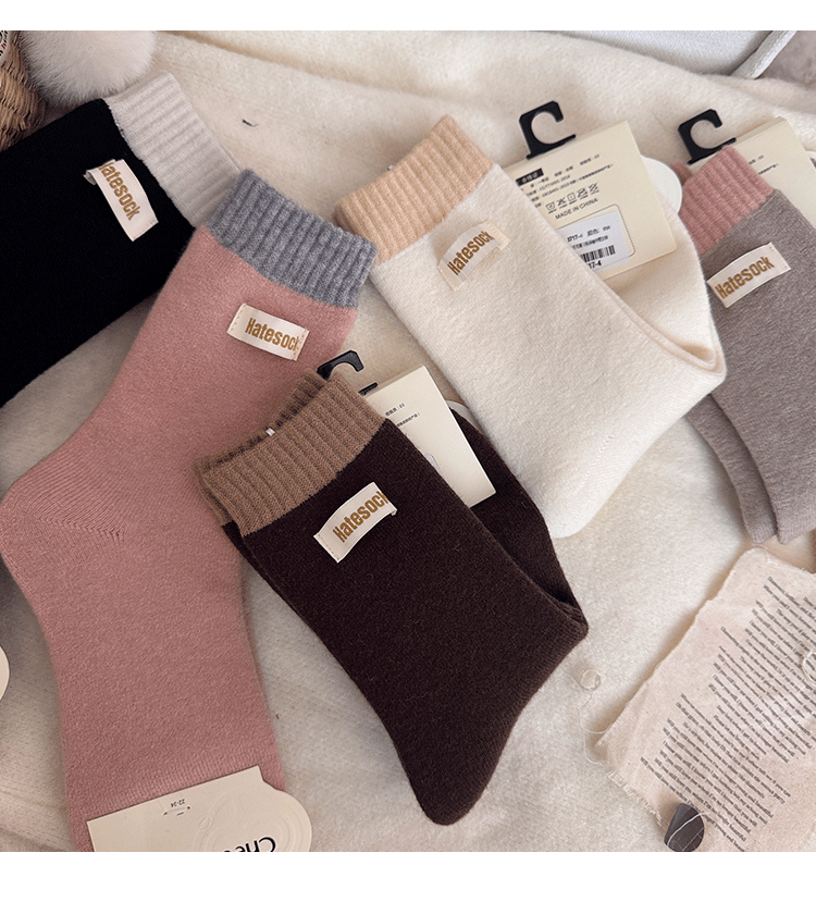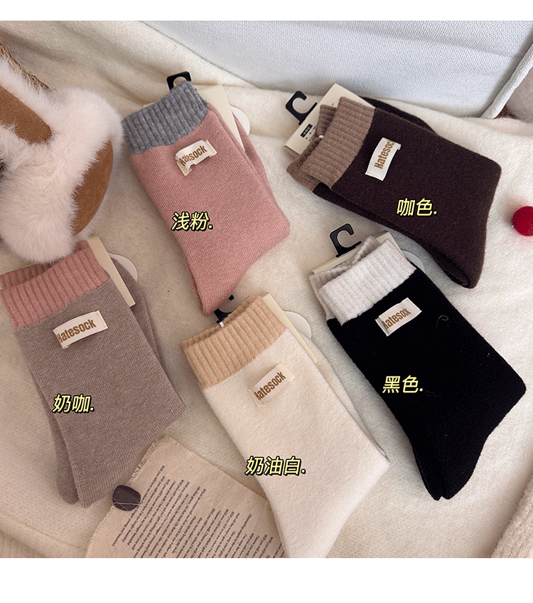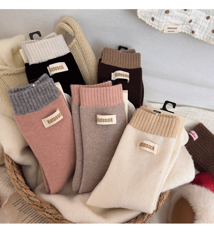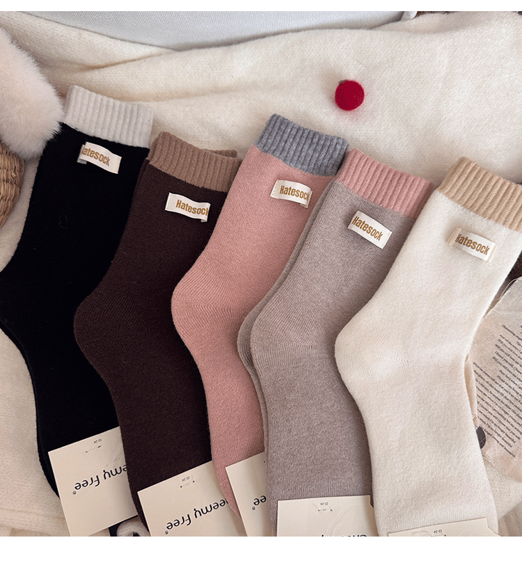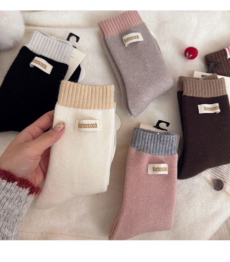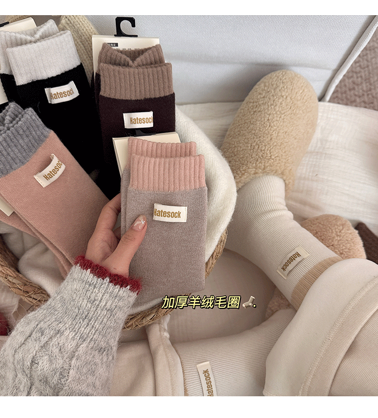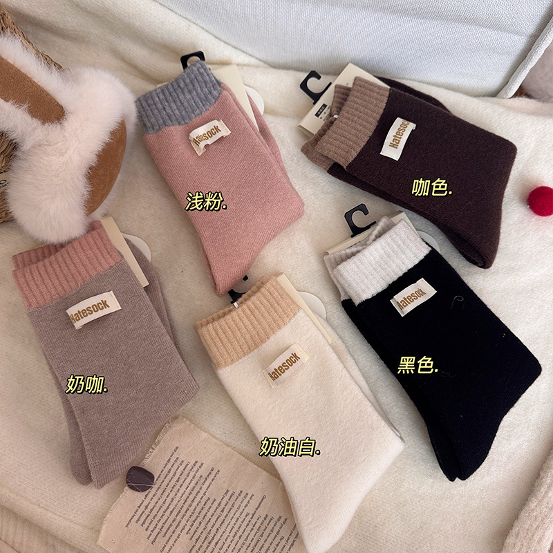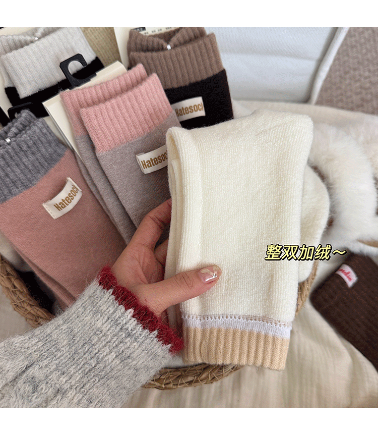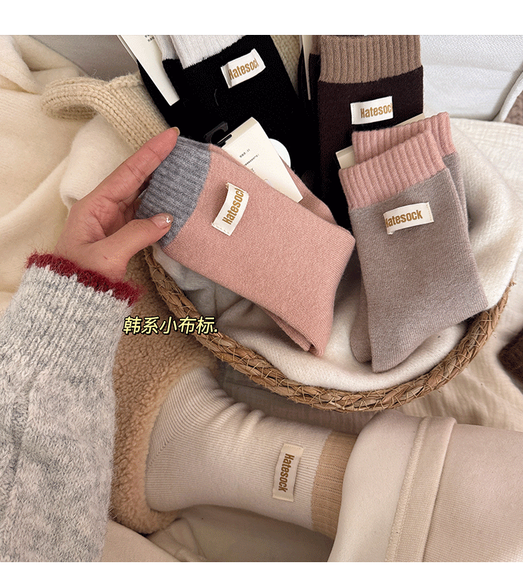 Hatesock 사이드 천 라벨 "두꺼운 플러스 벨벳 양말 어린이 양말 가을과 겨울 캐시미어 대비 양말 한글 버전