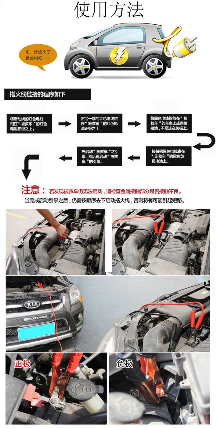 자동차 배터리 화재 와이어 대담한 600A 화재 와이어 배터리 클램프 연결 라인 점화 와이어 자동차 비상 용품