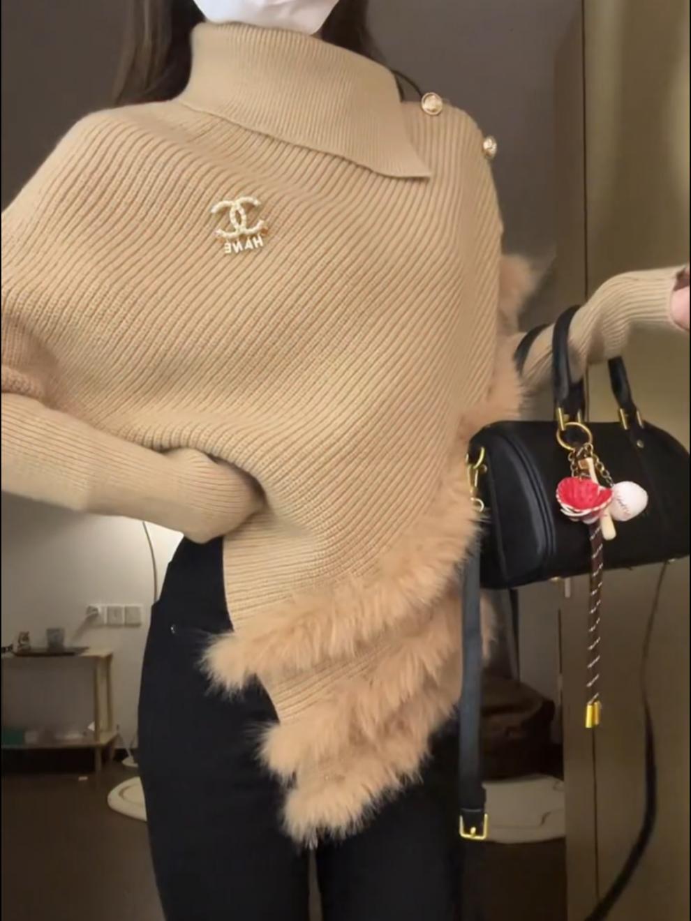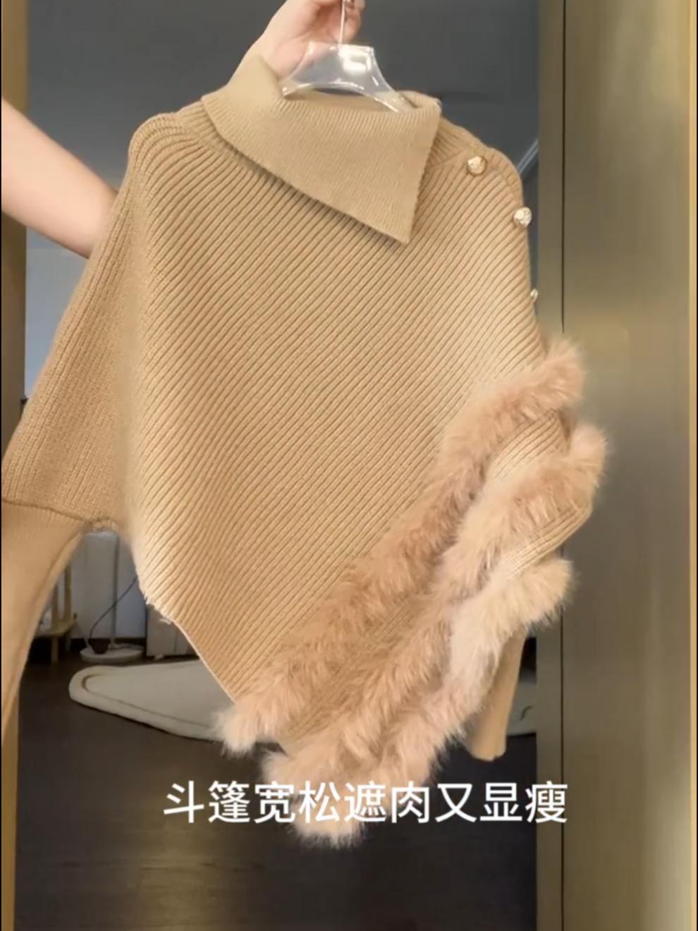 프랑스 스타일 우아한 높은 칼라 판초 풀오버 스웨터 여성 폼초 돌만 슬리브 틈새 느슨한 불규칙한 탑스토어 가기