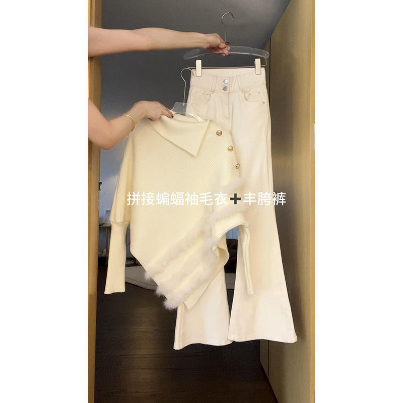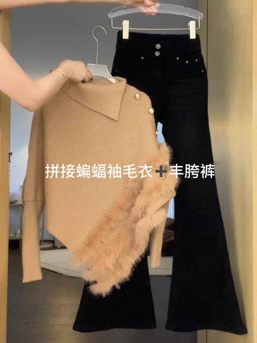 프랑스 스타일 우아한 높은 칼라 판초 풀오버 스웨터 여성 폼초 돌만 슬리브 틈새 느슨한 불규칙한 탑