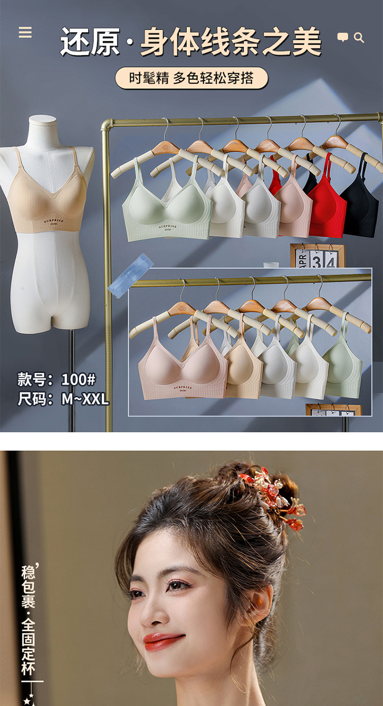 100 # M-2XL # 원활한 젤리 접착제 하이 퀄리티 속옷 소프트 지원 안티처링 편안한 통기성 고정 컵 브라