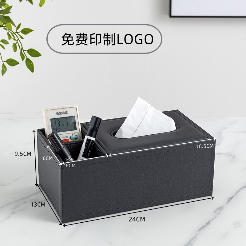 가죽 티슈 페이퍼 박스 호텔 홈 거실 원격 제어 다기능 스토리지 박스 호텔 홈스테이 공장 로고