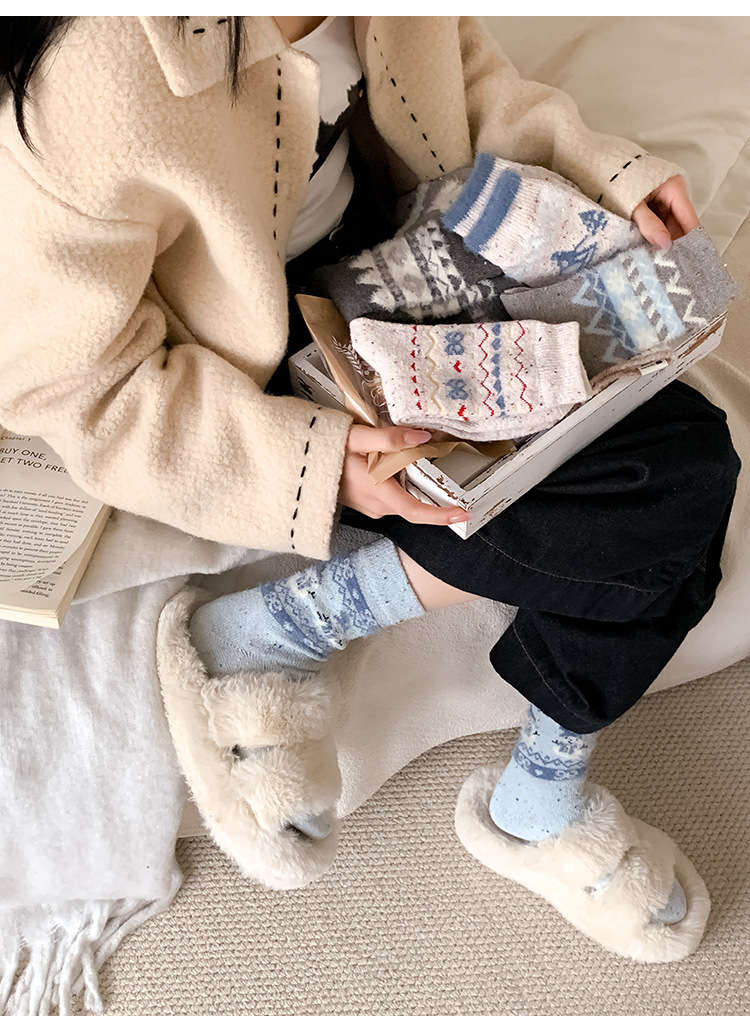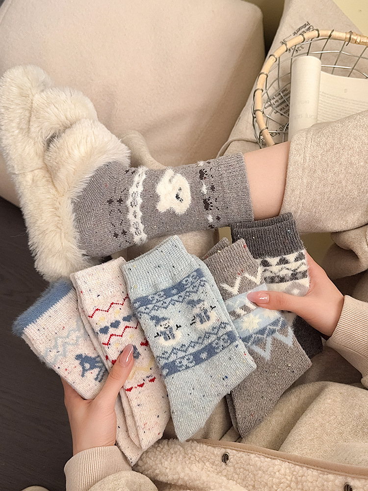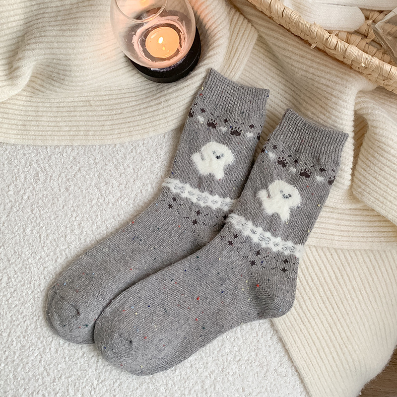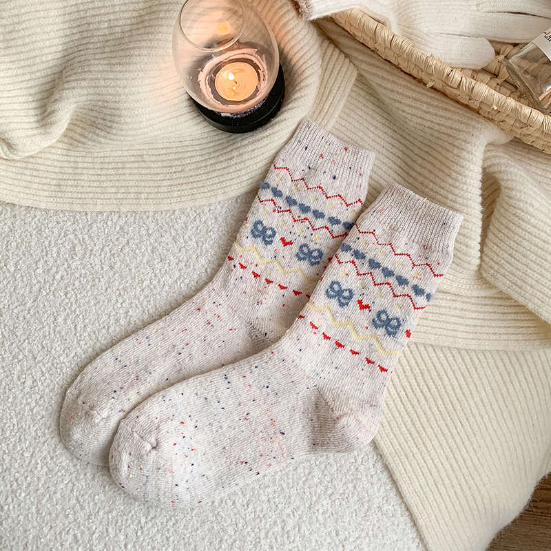 겨울 따뜻한 울 미드 튜브 양말 어린이 일본 스타일 올 매치 빈티지 페어 아일랜드 러브 보우 강아지 더미 양말
