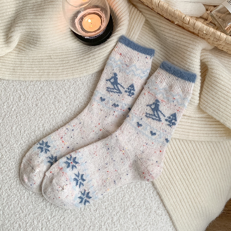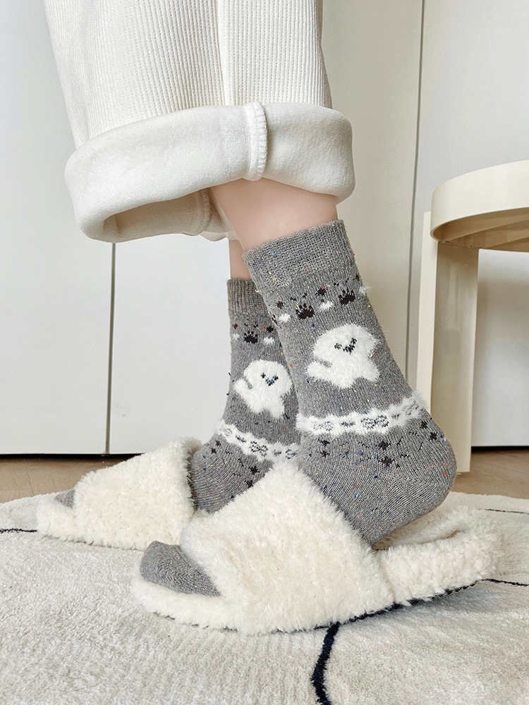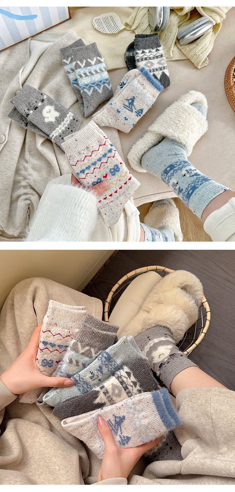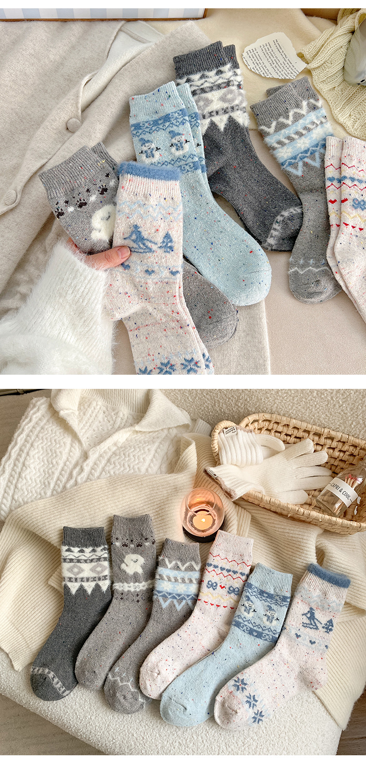겨울 따뜻한 울 미드 튜브 양말 어린이 일본 스타일 올 매치 빈티지 페어 아일랜드 러브 보우 강아지 더미 양말