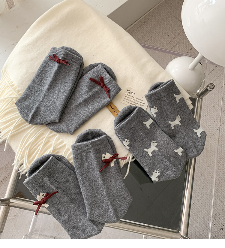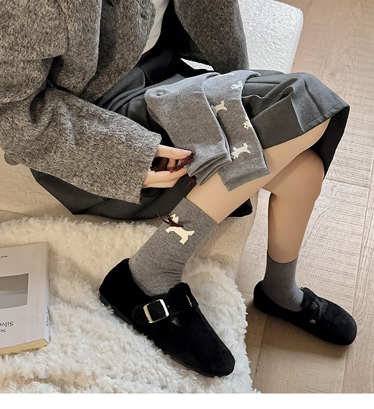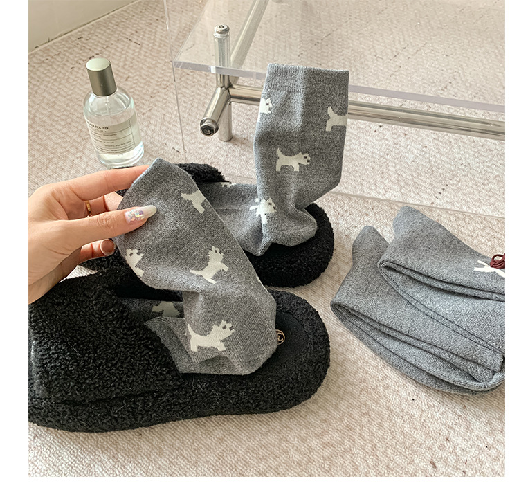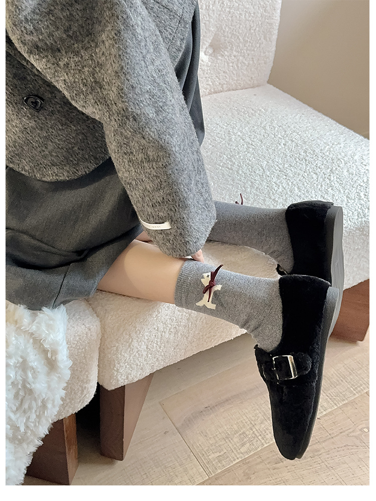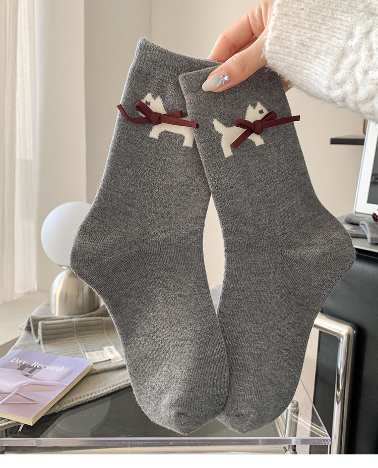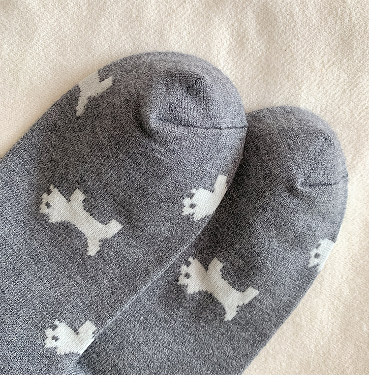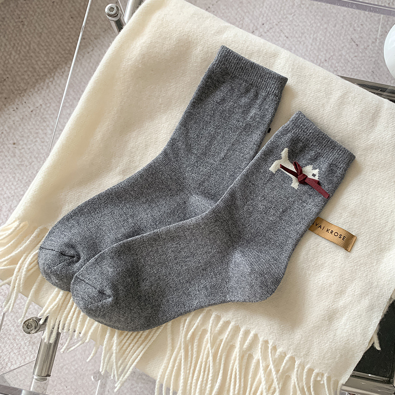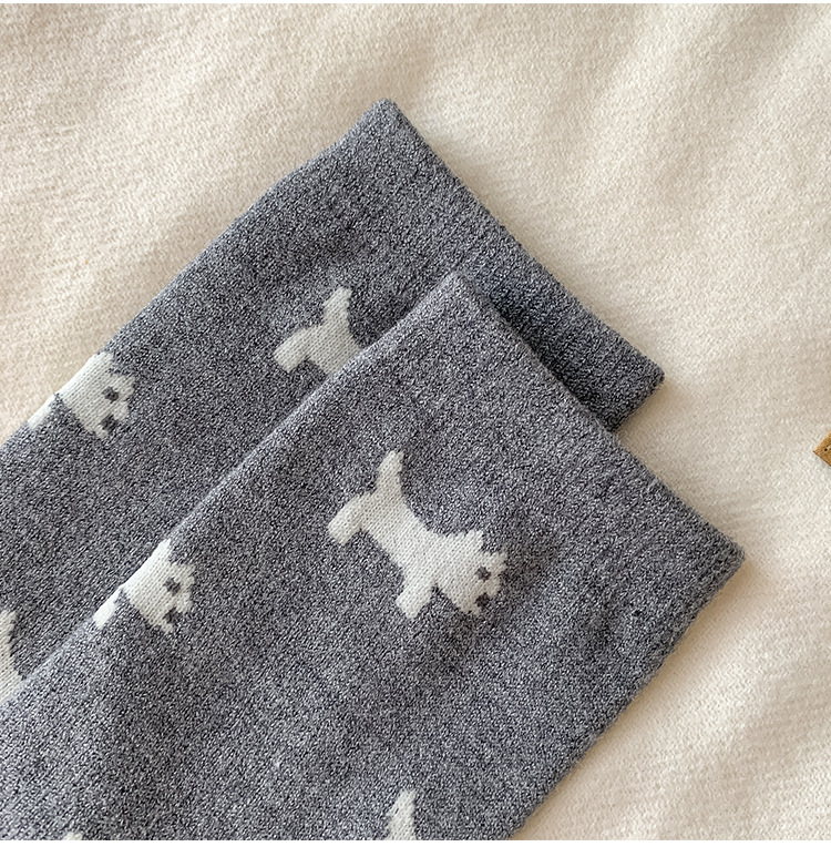 회색 양모 양말 여성 중간 길이 양말 겨울 따뜻한 벨벳 달콤한 나비 강아지 양말 새로운 한국 스타일 소녀 스타킹