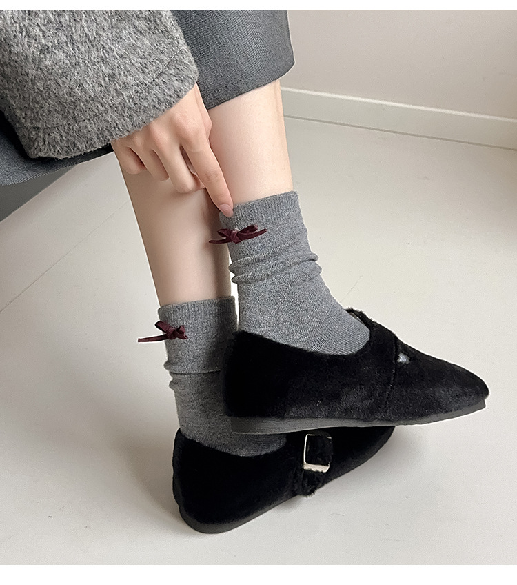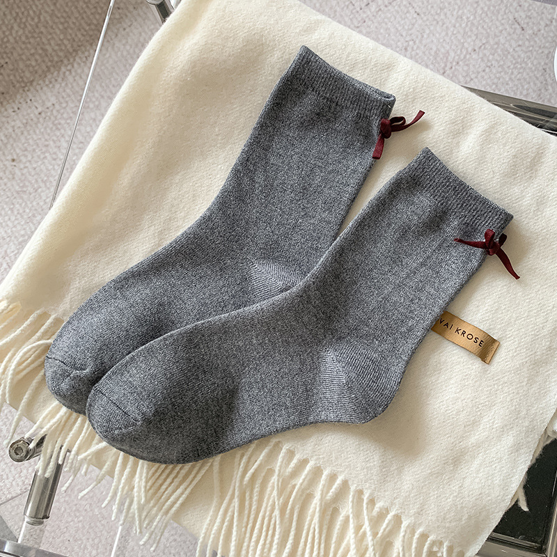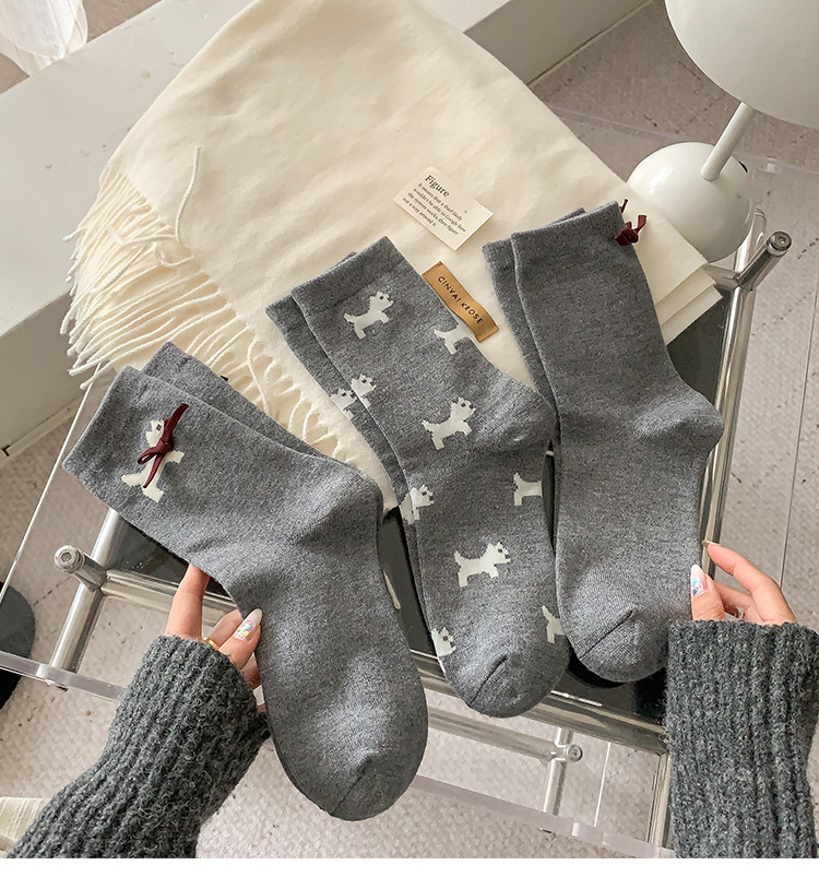회색 양모 양말 여성 중간 길이 양말 겨울 따뜻한 벨벳 달콤한 나비 강아지 양말 새로운 한국 스타일 소녀 스타킹스토어 가기
