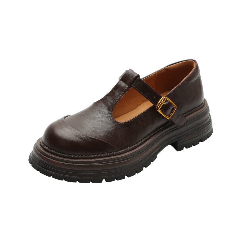 라운드 헤드 할로우 메리 제인 작은 가죽 신발 여성의 2025 년 초 봄 새로운 올 매치 심플 레트로 스타일 캐주얼 싱글 신발스토어 가기