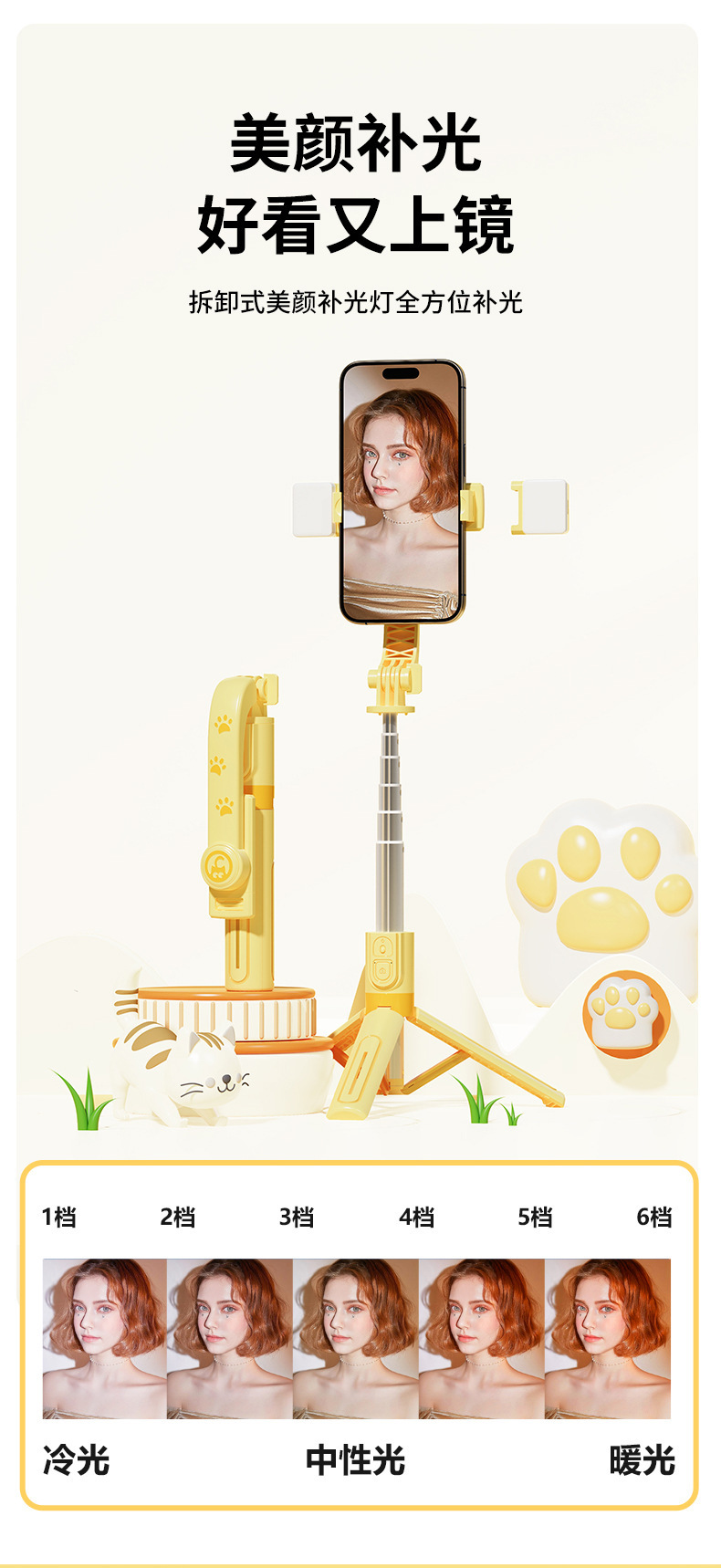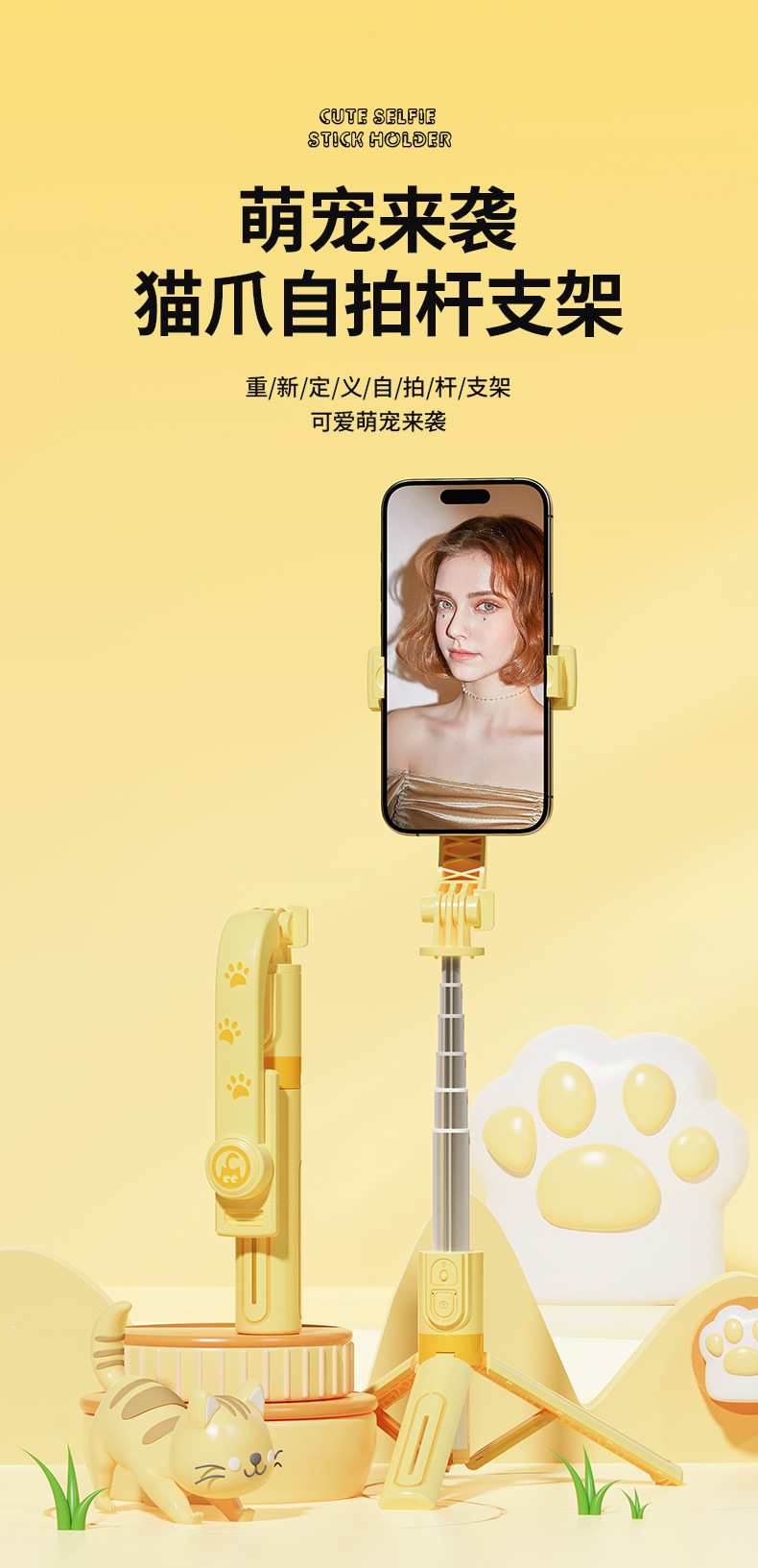 새로운 귀여운 애완 동물 전화 블루투스 셀카 스틱 금속 용골 삼각대 브래킷 미니 야외 라이브 방송 브래킷