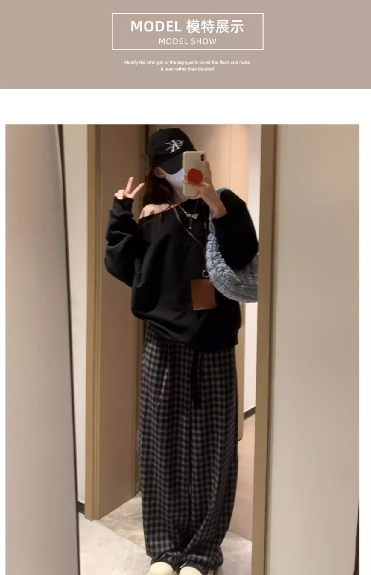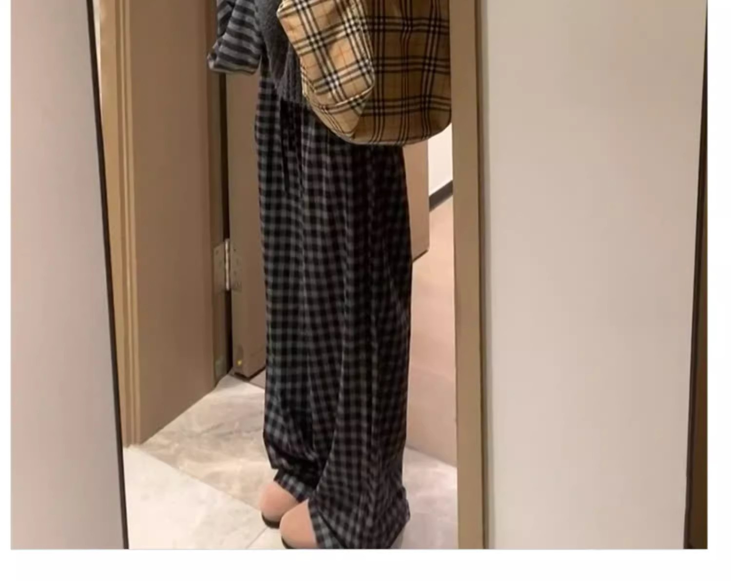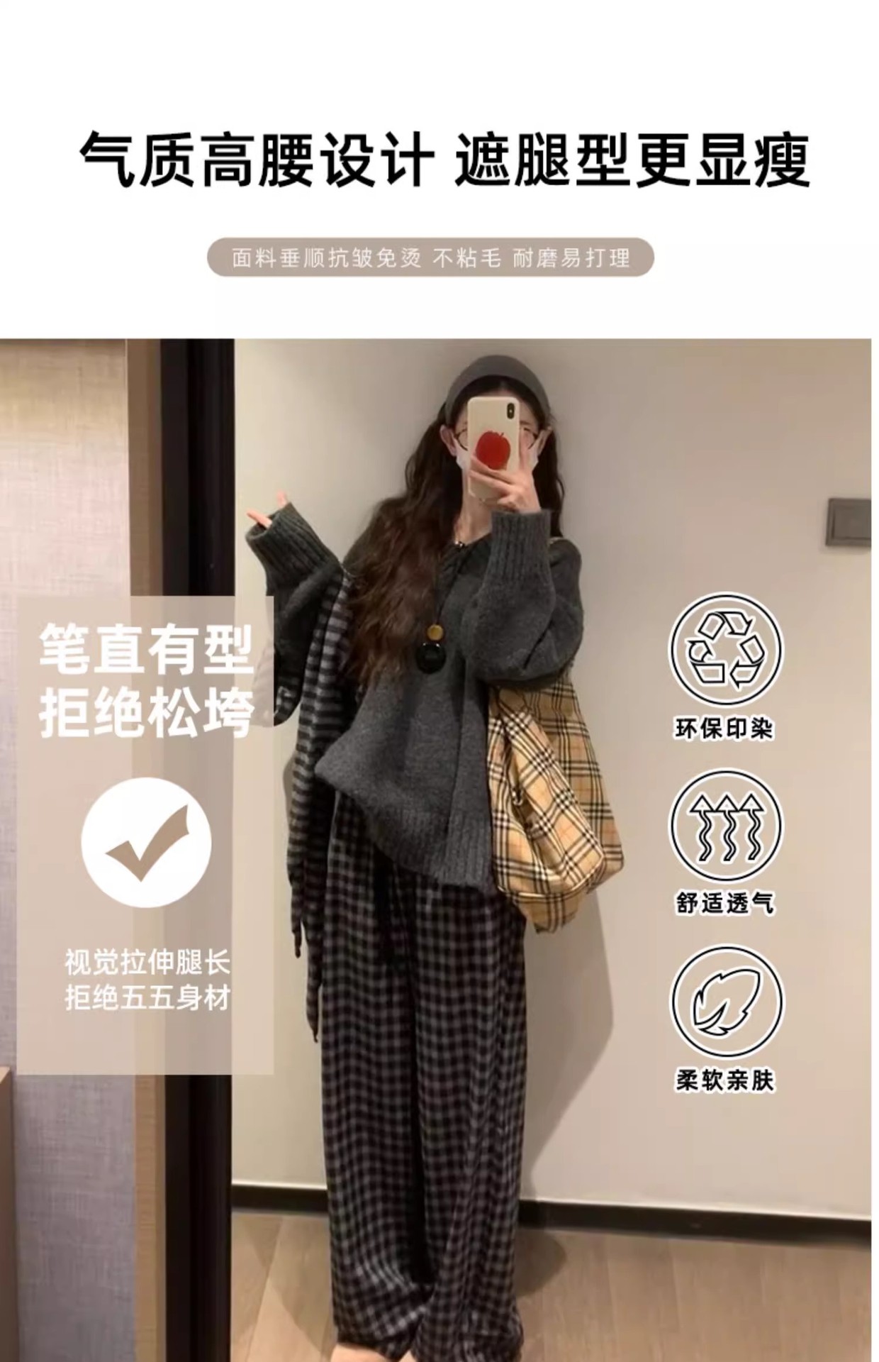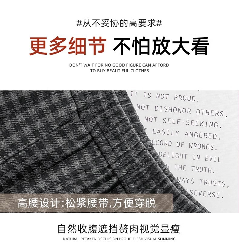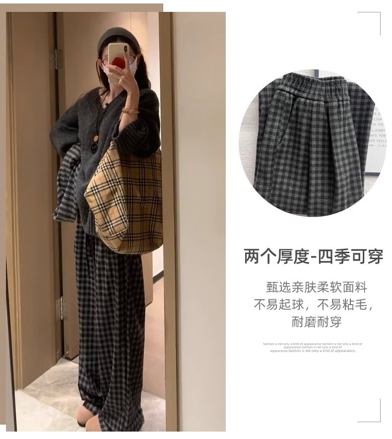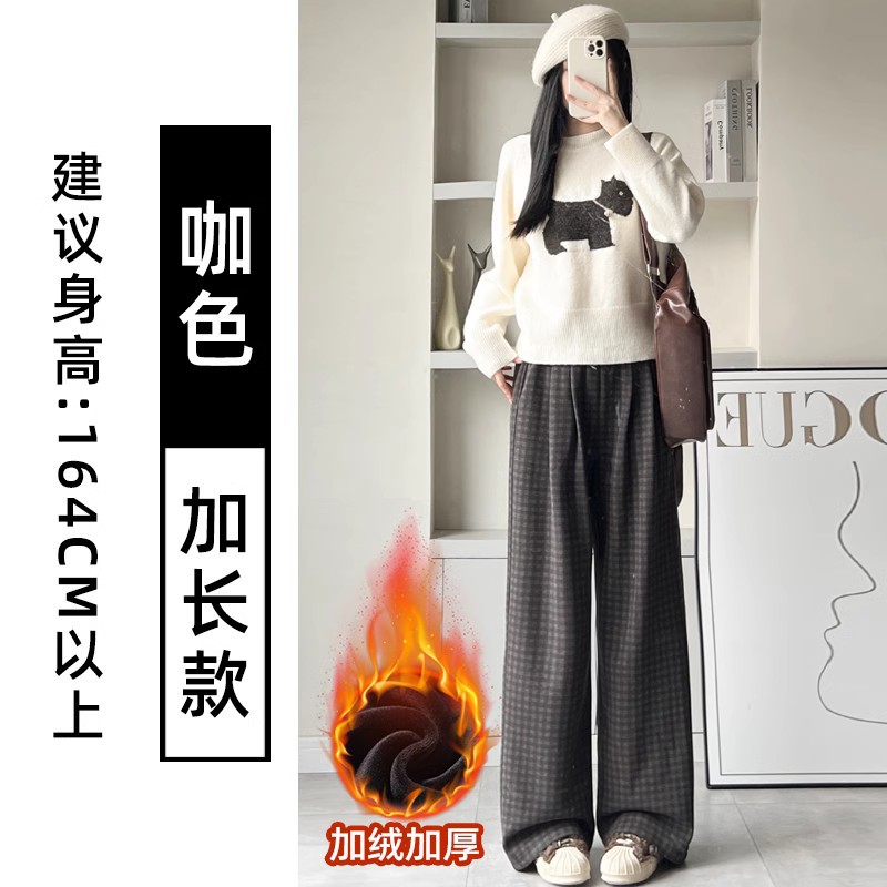 블랙 그레이 플리스 체크 팬츠 여성용 가을 겨울 2024 신상 스트레이트 하이웨이스트 소형 체형용 와이드 팬츠 캐주얼 다용도스토어 가기