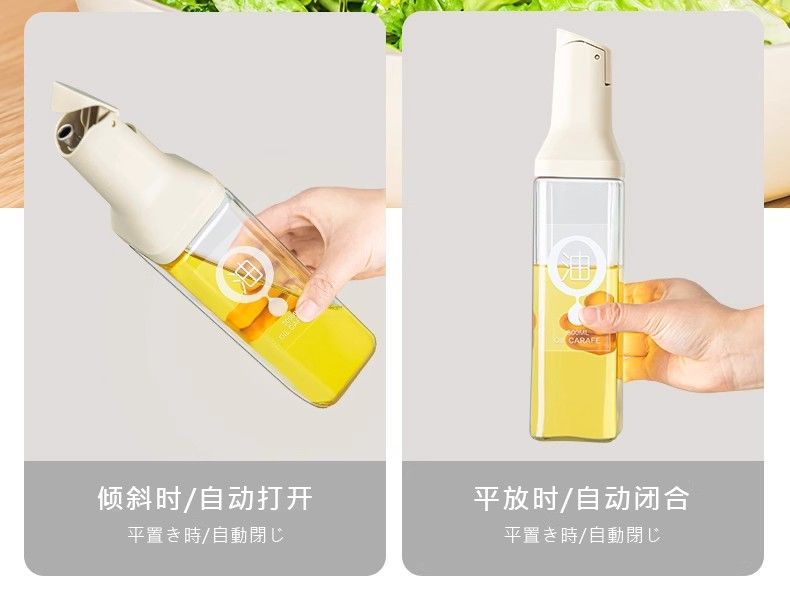 투명 유리 오일&식초 병, 누수 방지, 기름 묻음 방지, 가정용 주방 조미료 병, 자동 개폐 중력식 대형 오일병