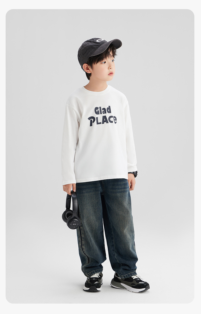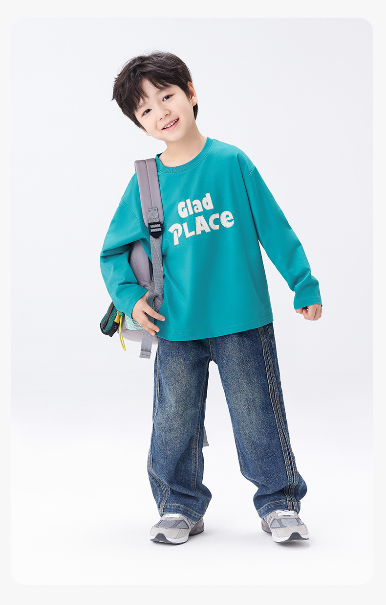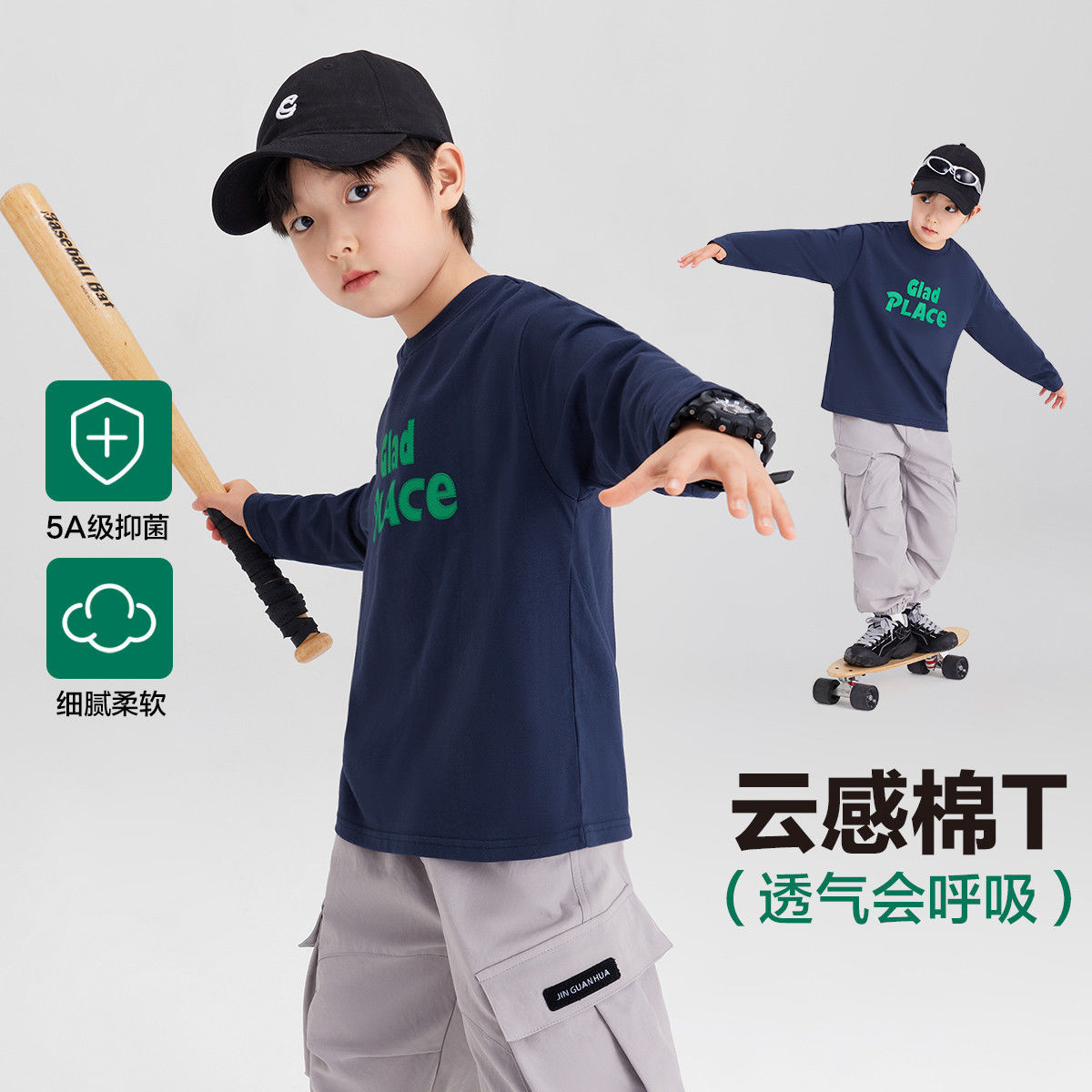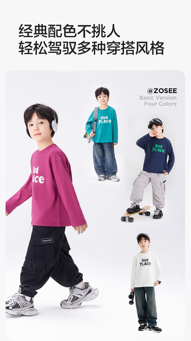Zuoxi 아동 의류 소년 티셔츠 긴팔 순수 면화 아동 가을 바닥 셔츠 봄, 가을 2025 소년과 소녀를위한 새로운상의스토어 가기