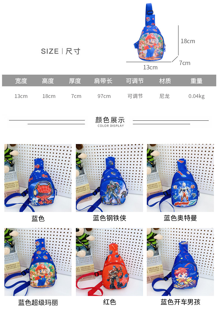 2024 새로운 어린이 가슴 가방 소년 잘 생긴 만화 동전 지갑 경량 캐주얼 크로스 바디 가방 야외 패션 배낭스토어 가기