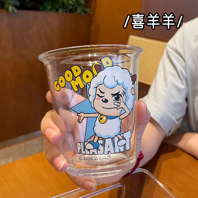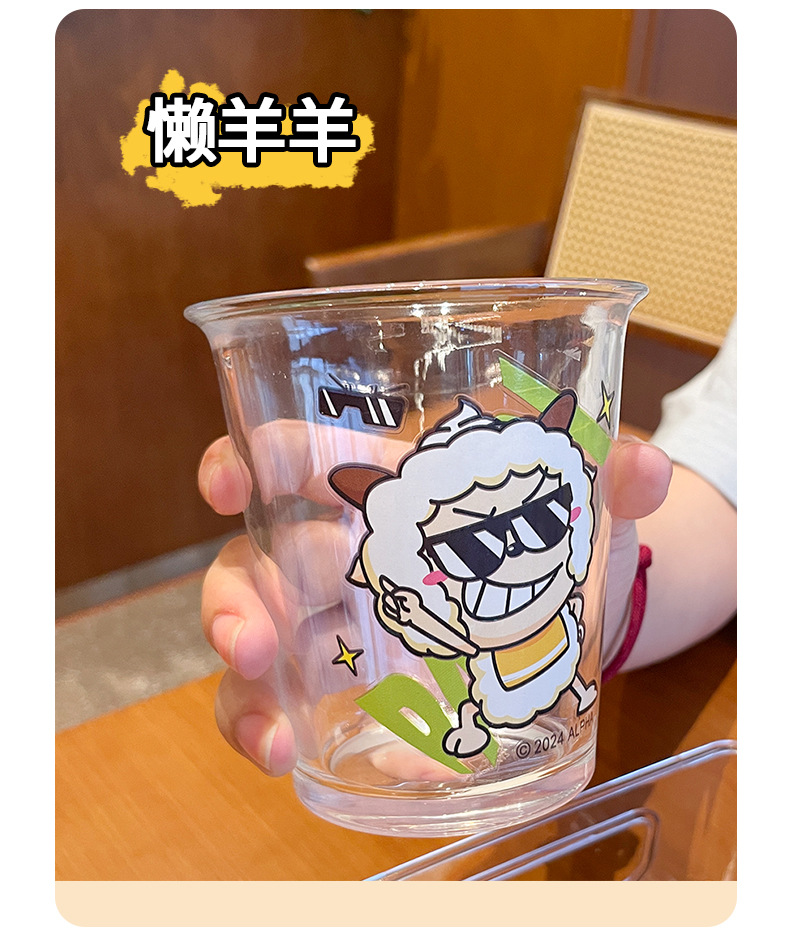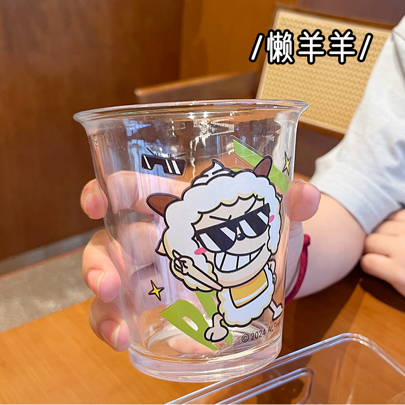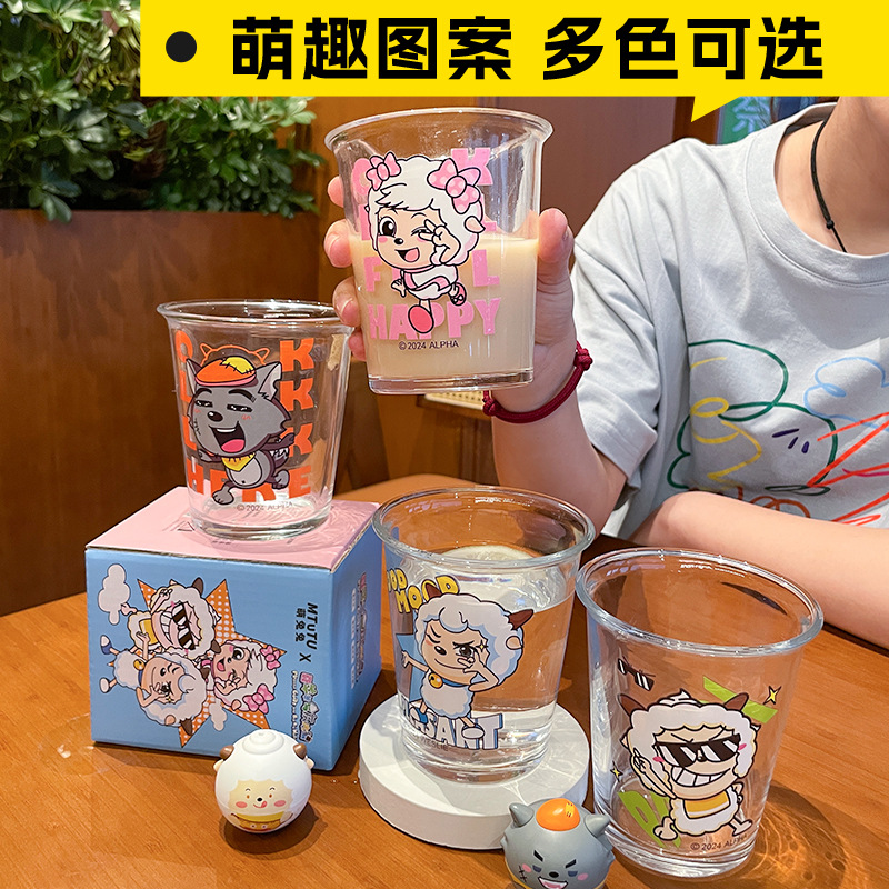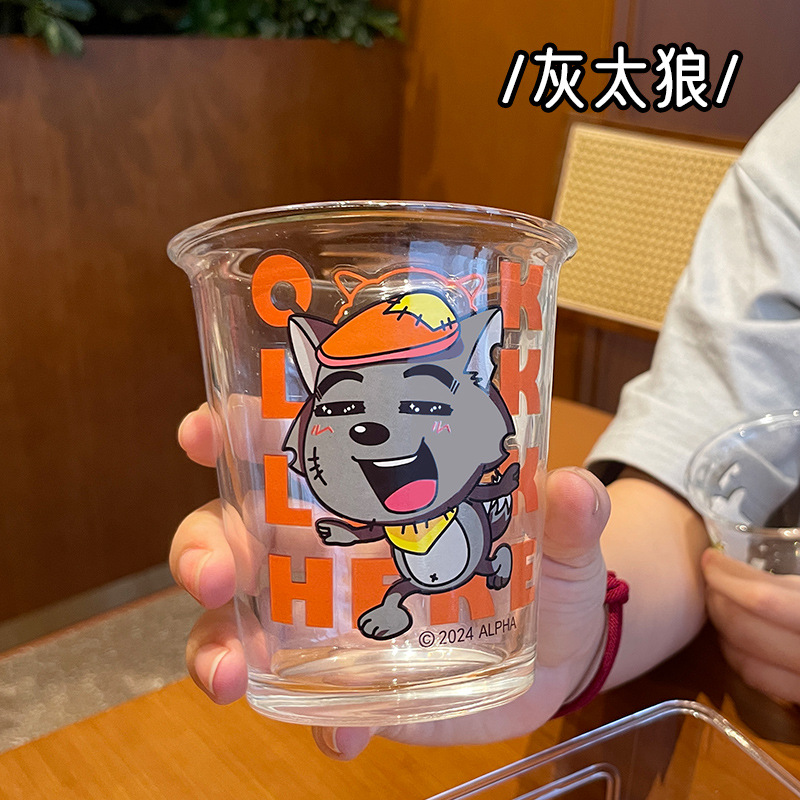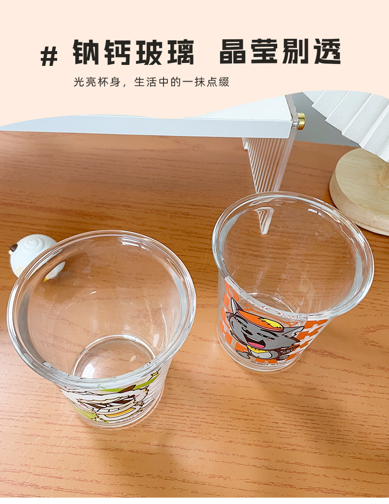유리컵 히야옹양과 회색늑대 정품 만화 캐릭터 구강세정컵 차컵 고붕규산 유리 물컵