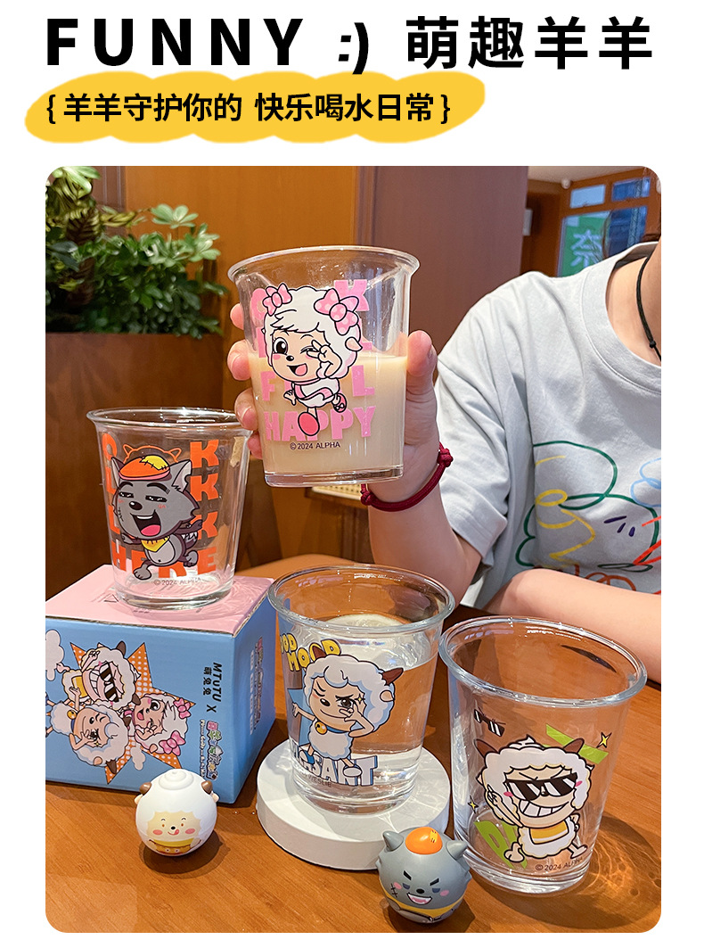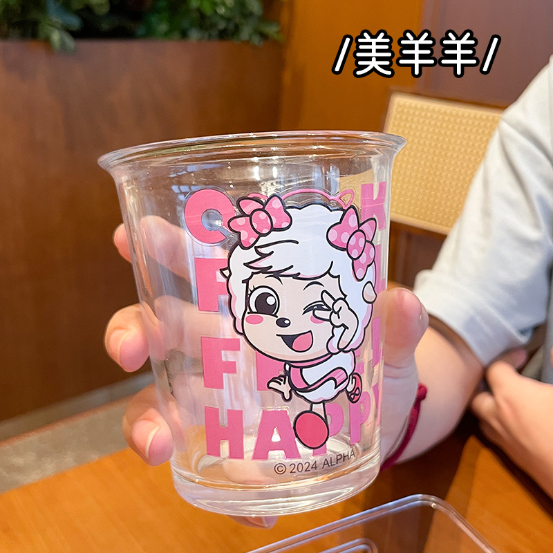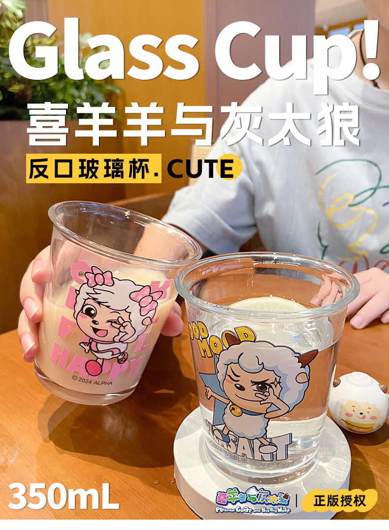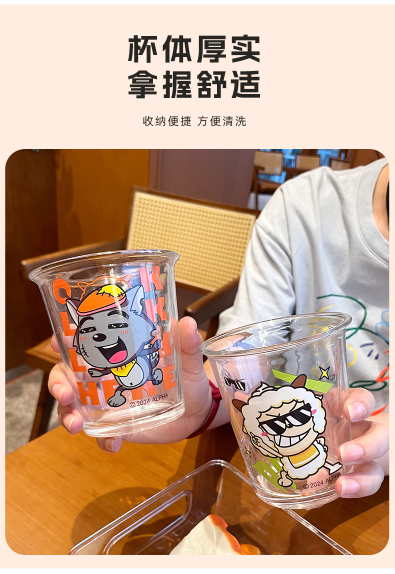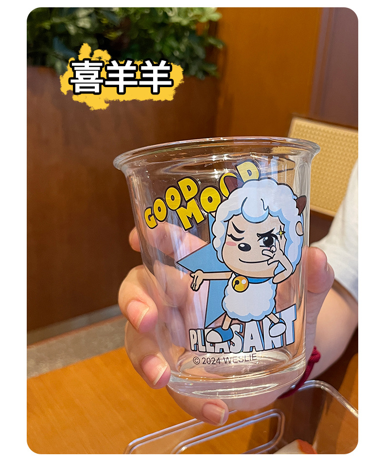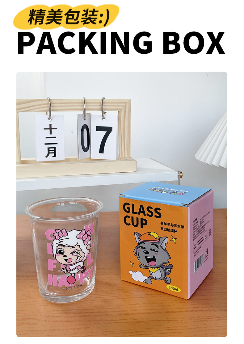 유리컵 히야옹양과 회색늑대 정품 만화 캐릭터 구강세정컵 차컵 고붕규산 유리 물컵