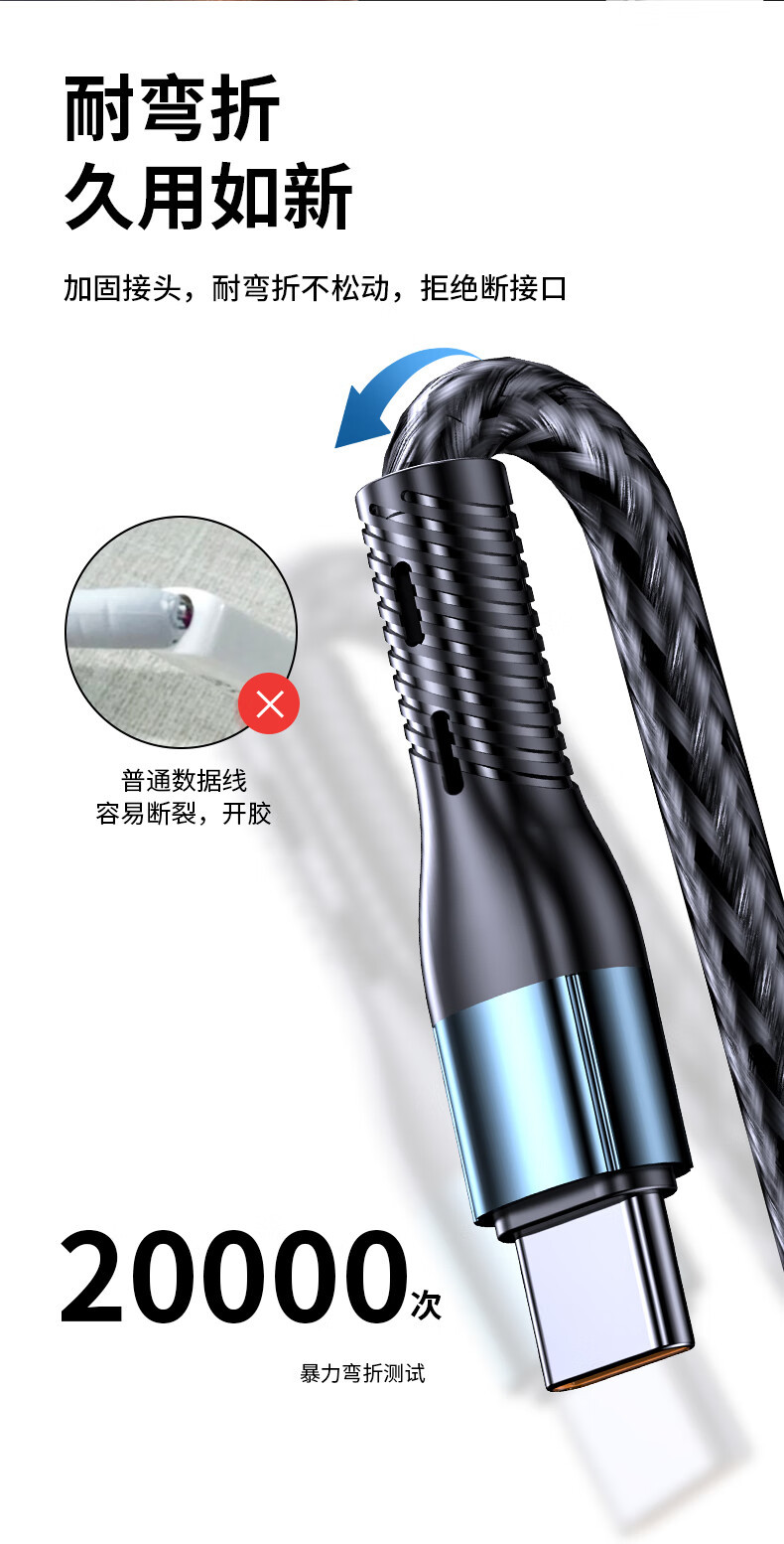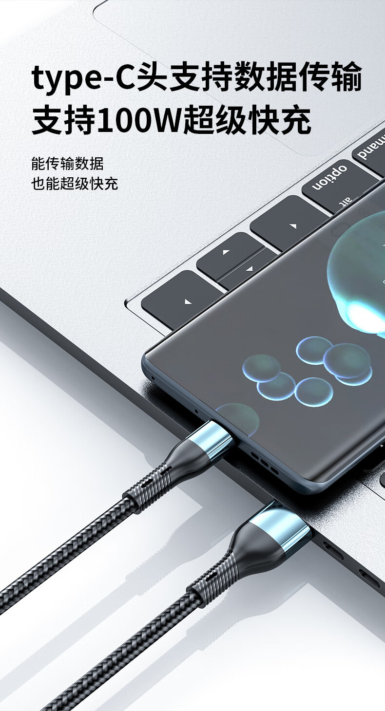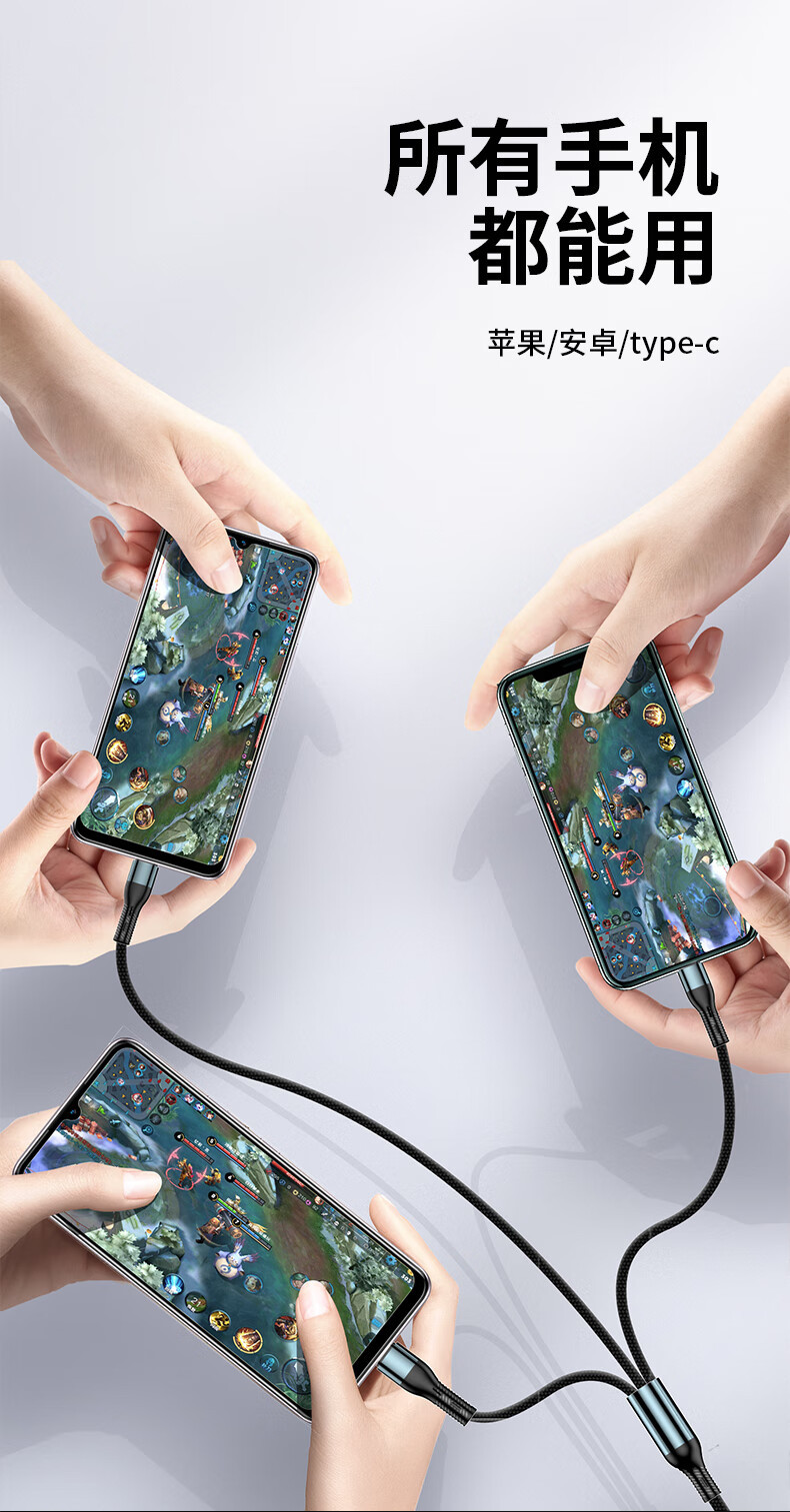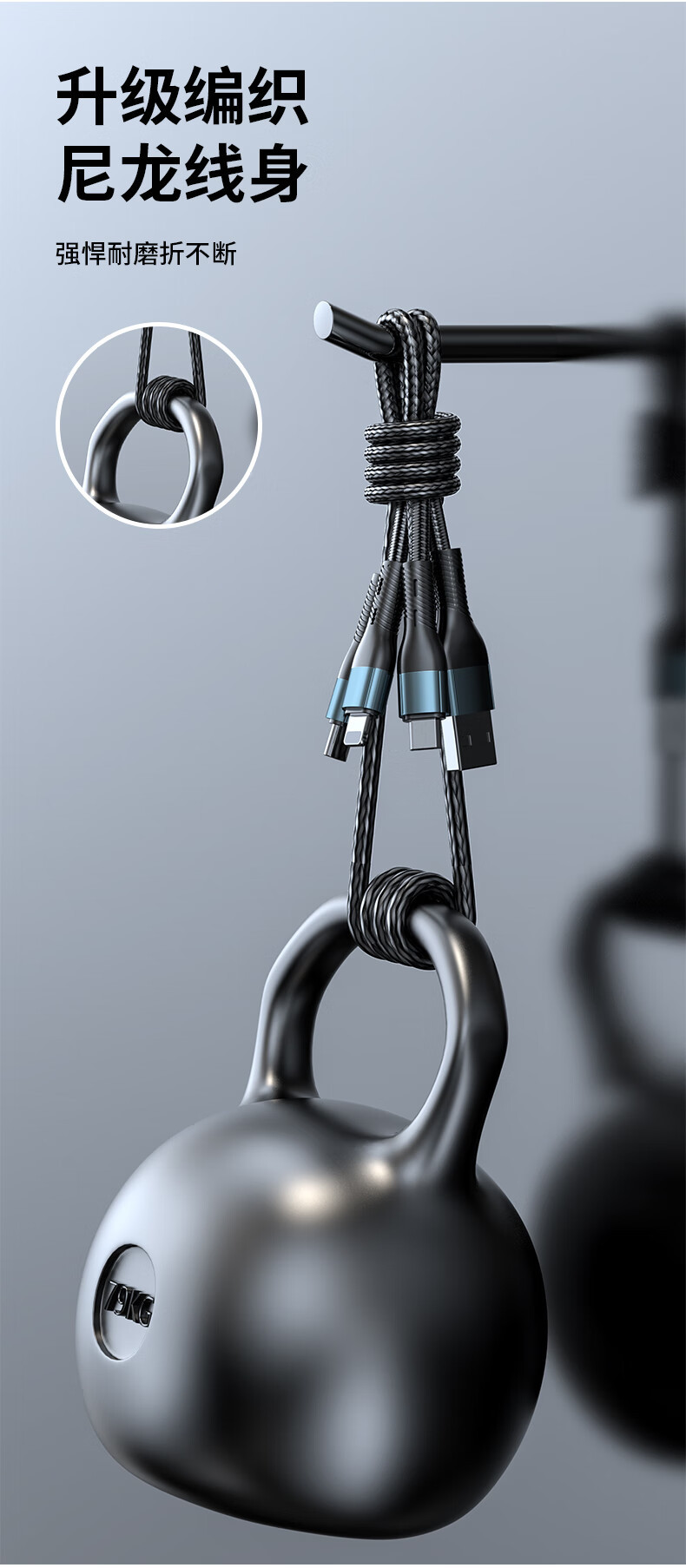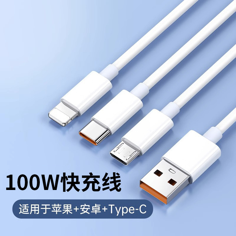 100W 초고속 충전 멀티 포트 충전기 3-in-1 데이터 케이블 1-3 멀티 헤드 기능성 편조 케이블