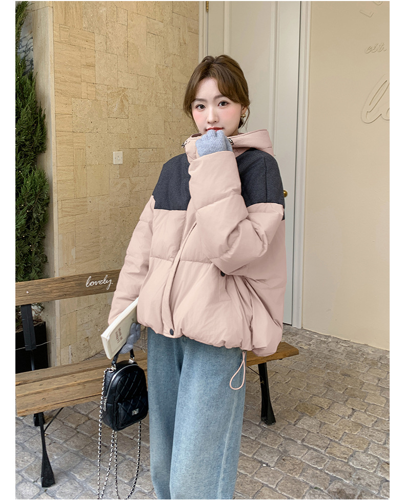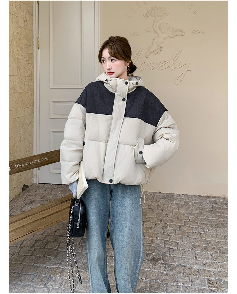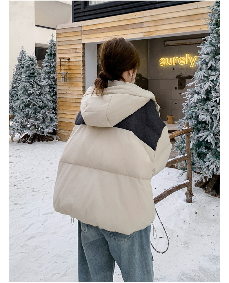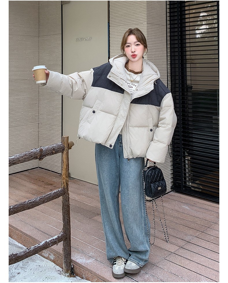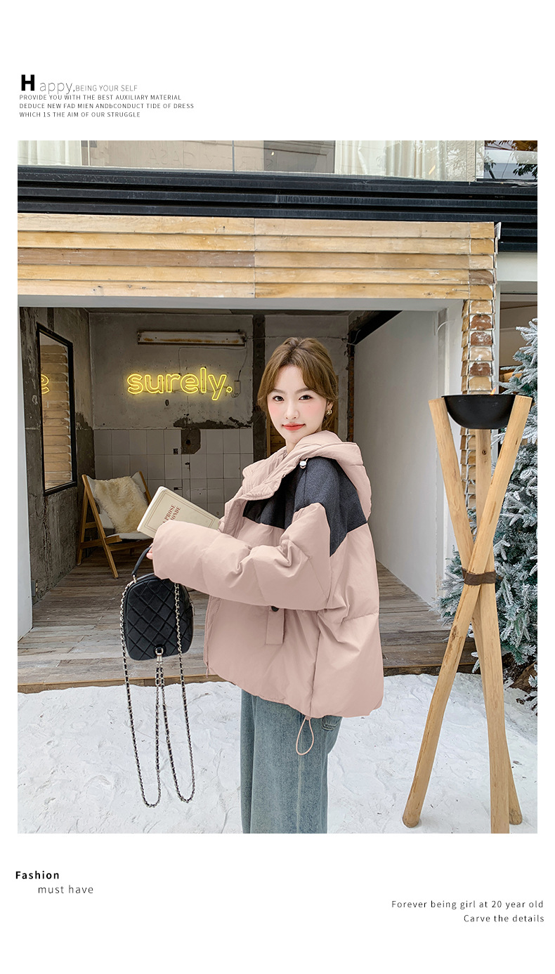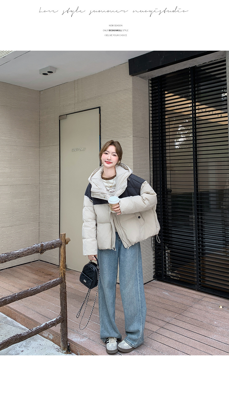 베이지 스티칭 짧은 후드 다운 재킷 한국 스타일 디자인 센스 기질 90 화이트 덕 다운 재킷 6112P295K428스토어 가기