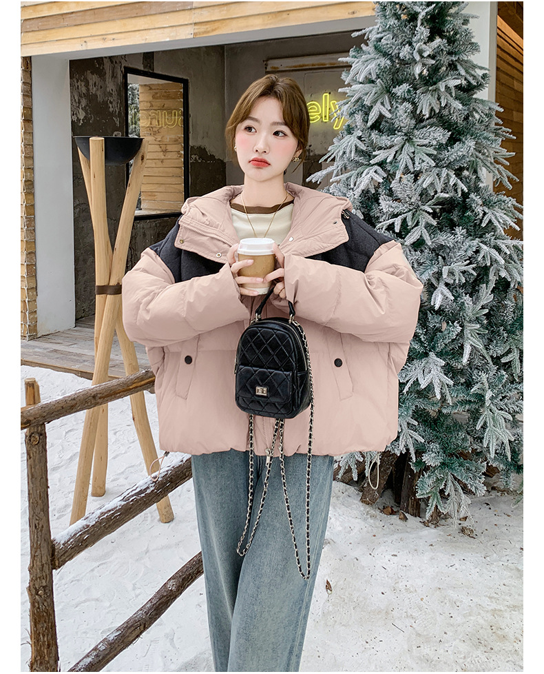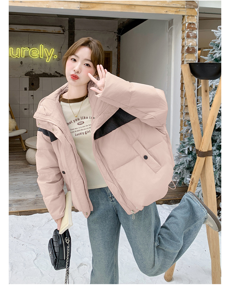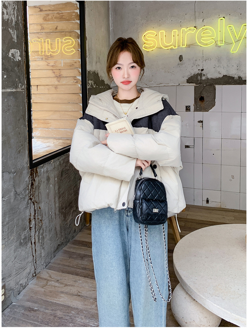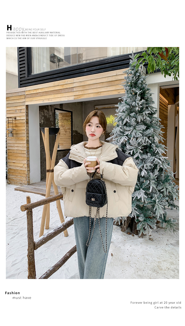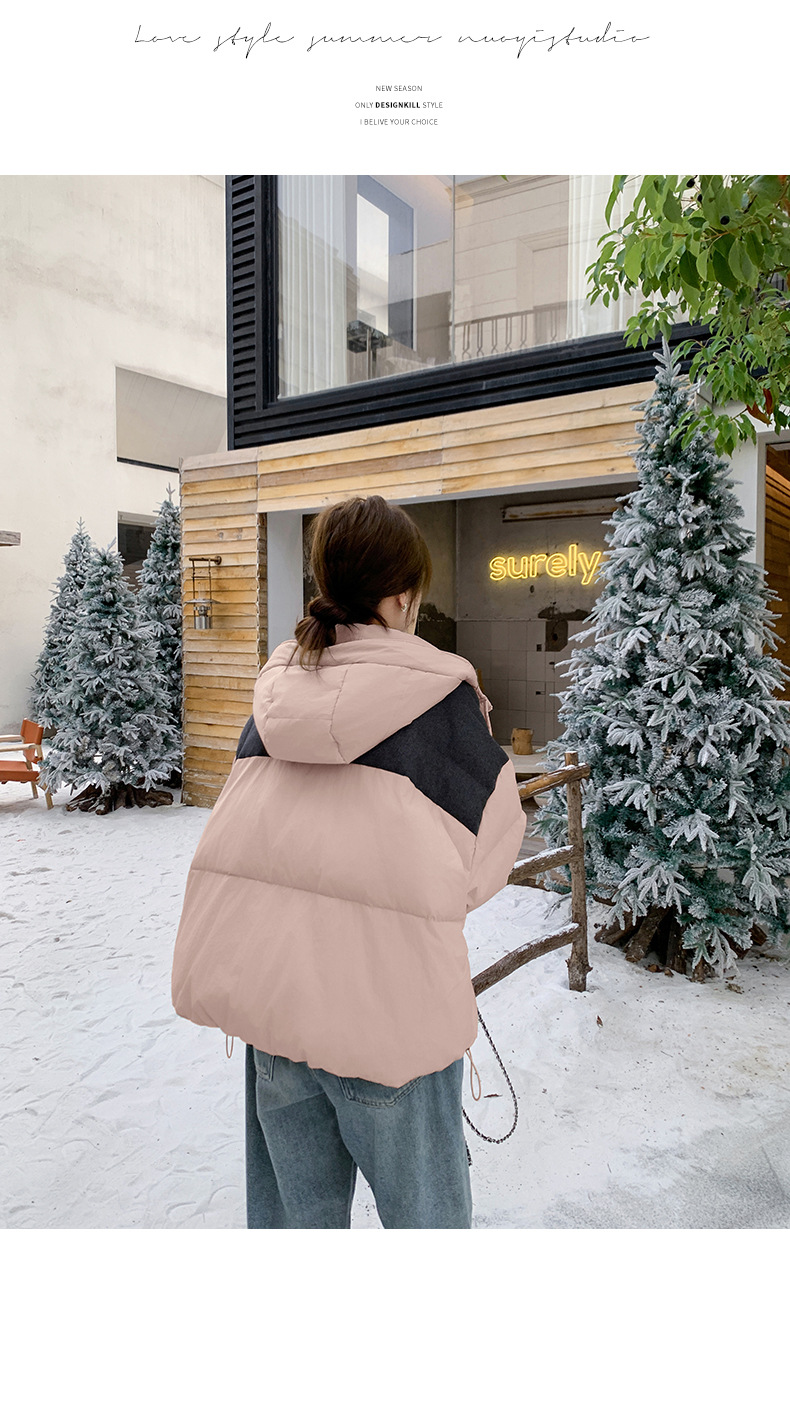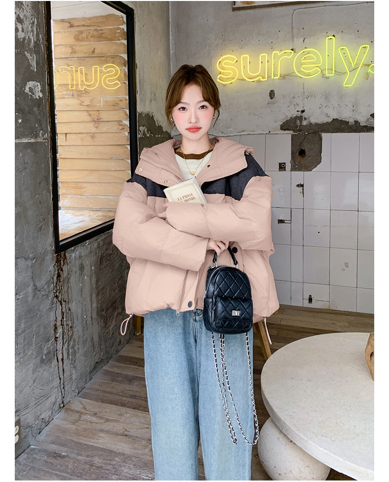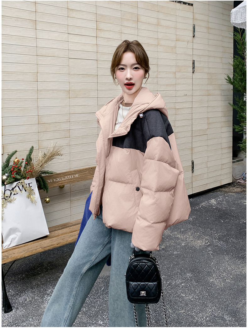 베이지 스티칭 짧은 후드 다운 재킷 한국 스타일 디자인 센스 기질 90 화이트 덕 다운 재킷 6112P295K428스토어 가기
