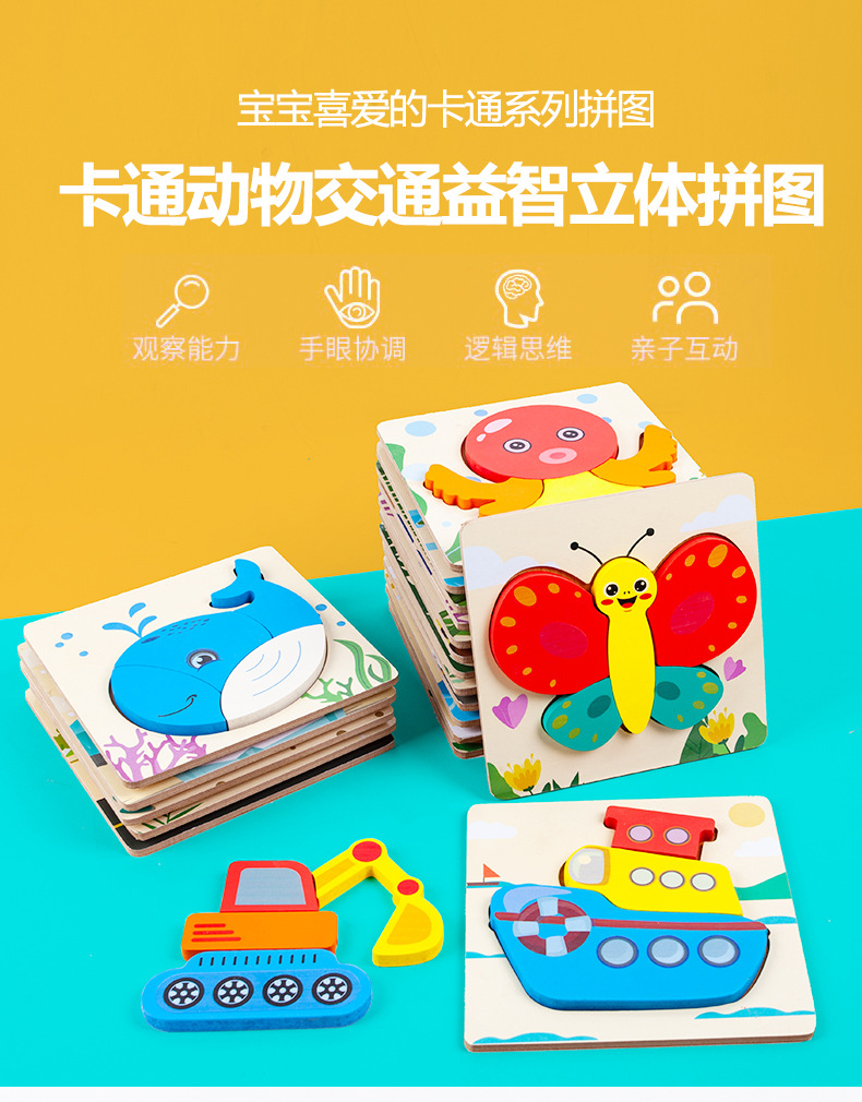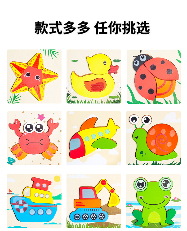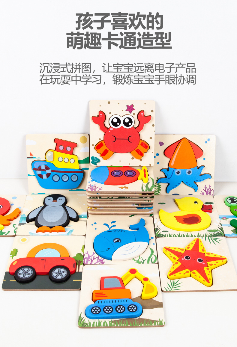 어린이 나무 만화 동물 입체 퍼즐 아기 조기 교육 두꺼운 퍼즐 장난감 제조 업체 도매스토어 가기