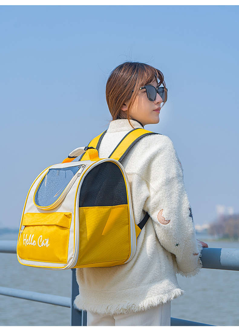 • 등받이 겸용 [고양이귀 우주캡슐] 레몬옐로우 대형 공간 백팩