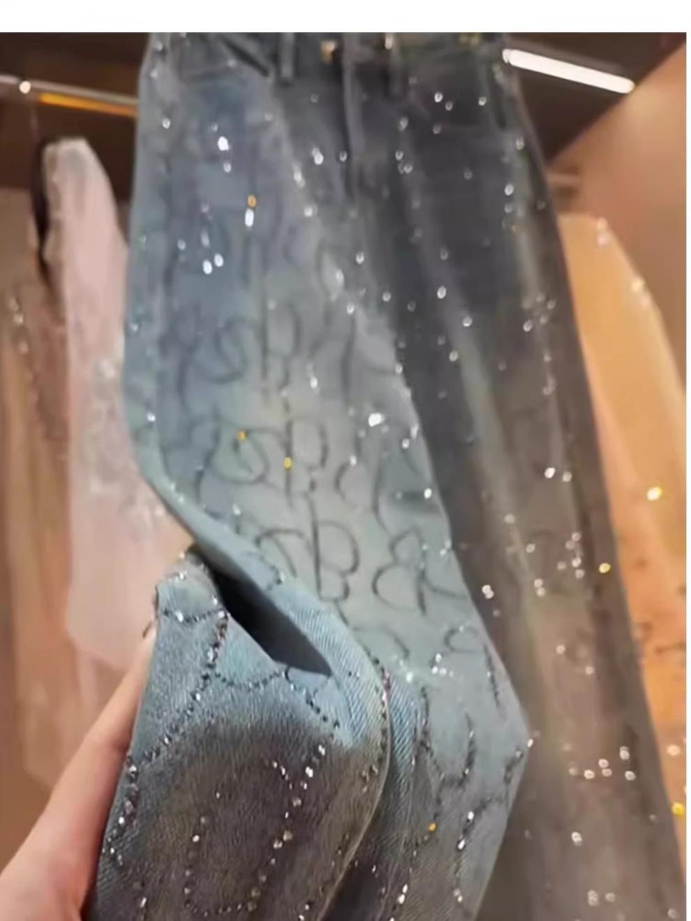 2025년 봄 여름 신상 디자인의 여성용 핫픽스 데님 팬츠, 하이웨이스트, 화려한 스톤 장식, 루즈핏 스트레이트 와이드 레그 롱 팬츠