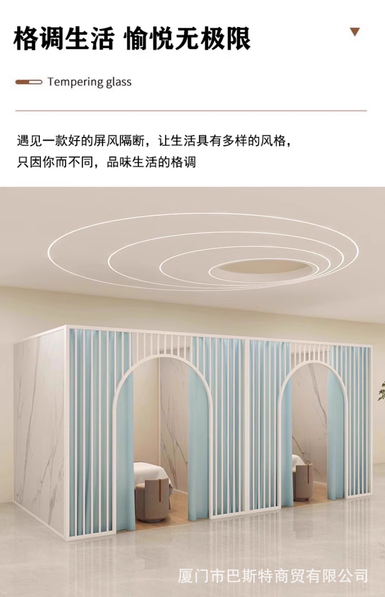 뷰티 살롱 화면 파티션 건강 살롱 머리 치료 침대 상자 싱글 룸 발 목욕 찻집 부스 문 열기 장식 벽