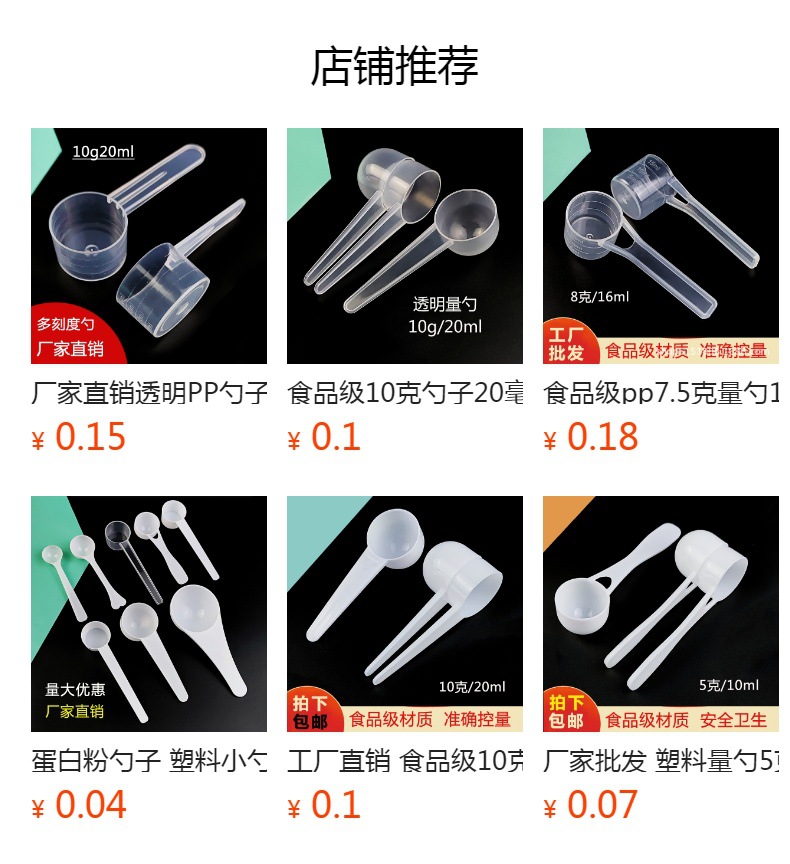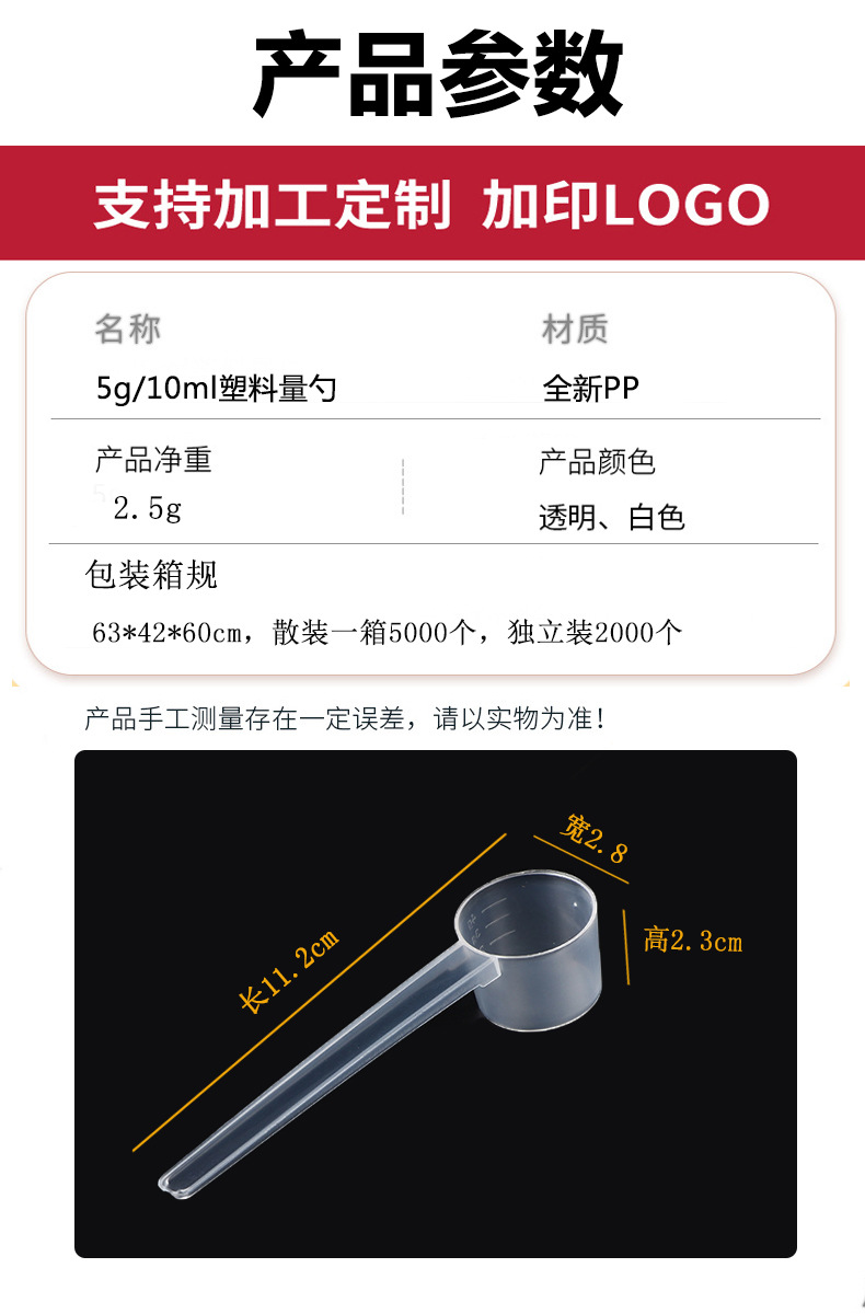별도의 포장 5 g 숟가락 10ml 플라스틱 측정 숟가락 투명한 평평한 바닥 비늘 그램 숟가락 우유 가루 숟가락