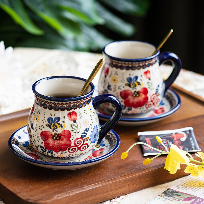 GJU8 세라믹 커피 컵 홈 폴란드어 빈티지 애프터눈 티 세트 워터 컵 머그잔 커피 컵 소스 라떼