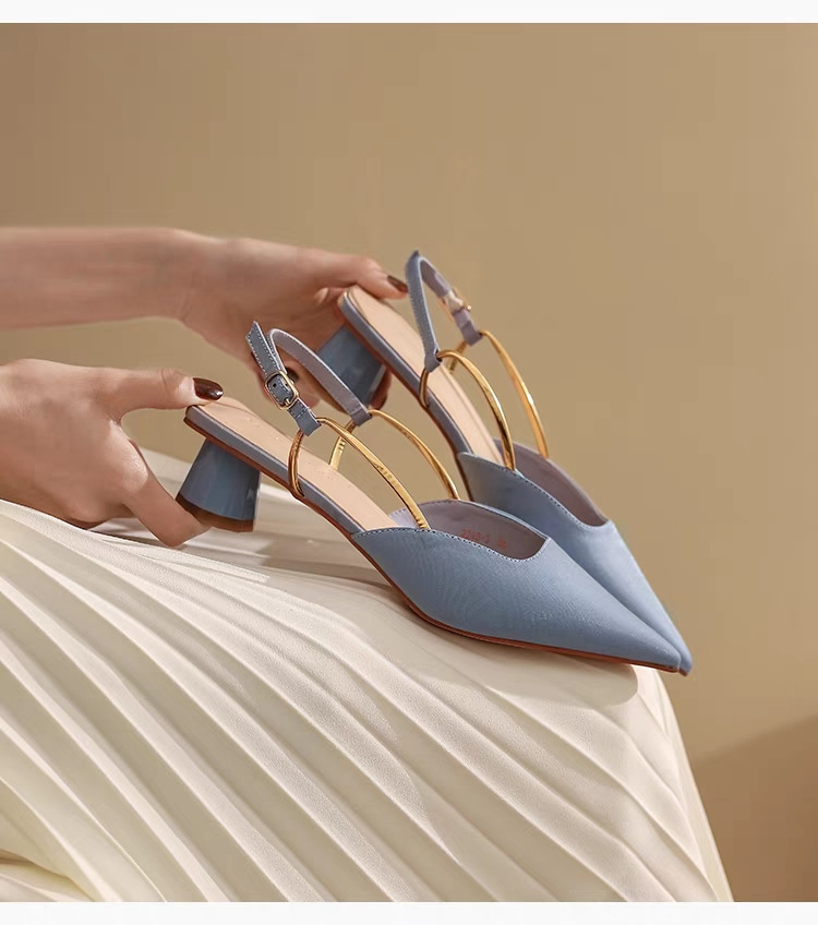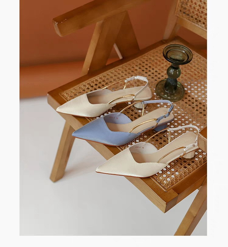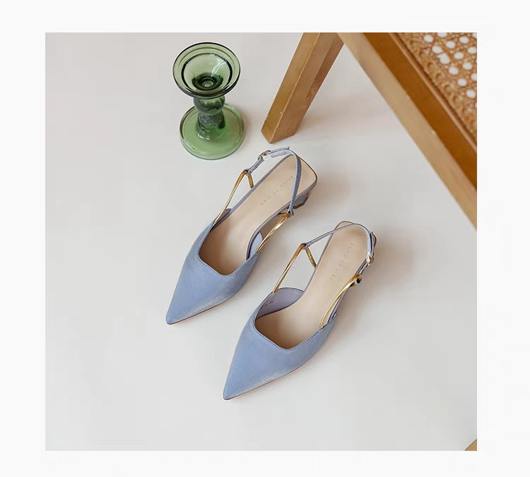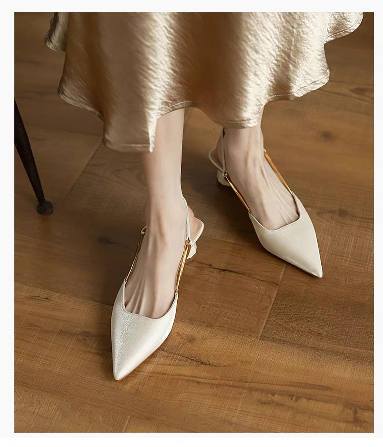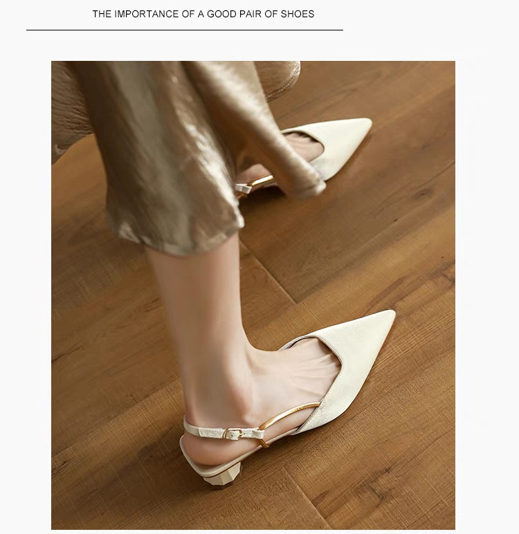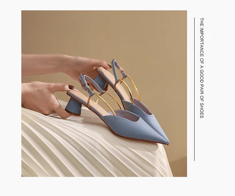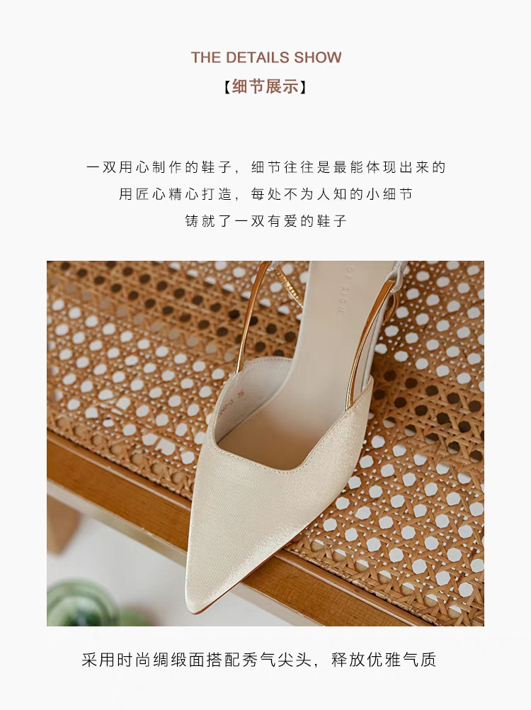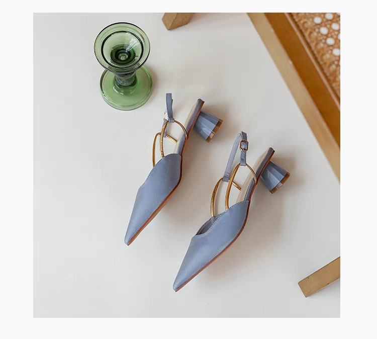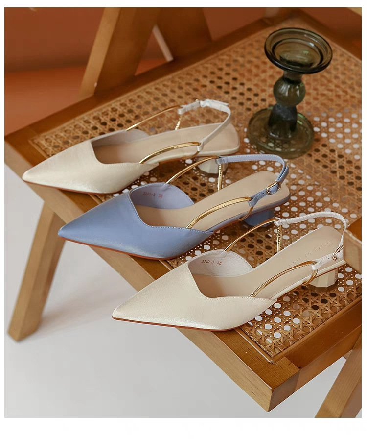 프랑스 스타일 낮은 발가락 샌들 여성의 2024 년 여름 새로운 중간 높이 굽 신발 새틴 우아한 뾰족한 발가락 유행 싱글 레이어 신발스토어 가기