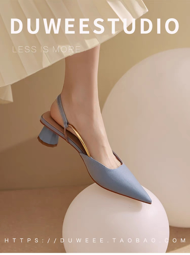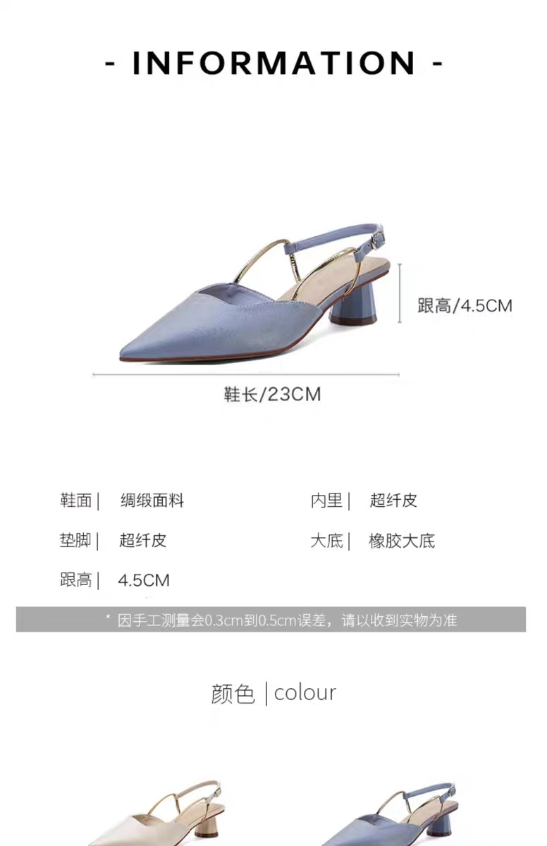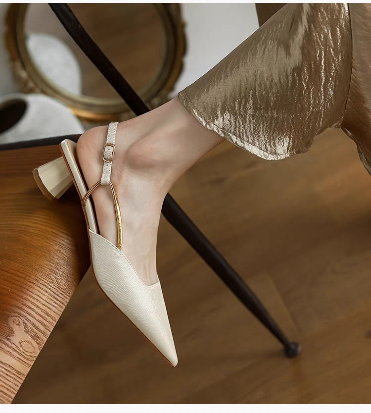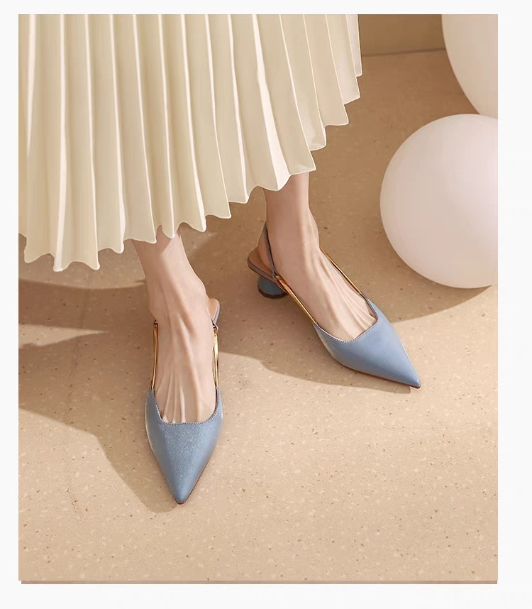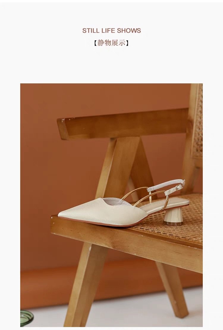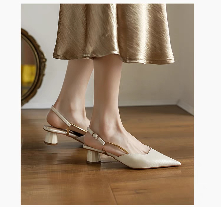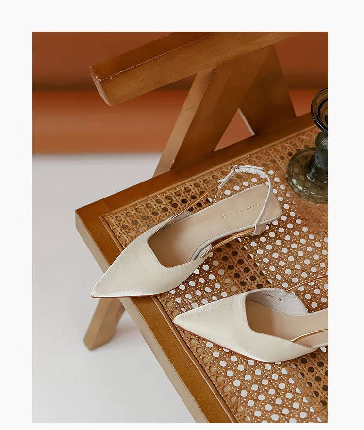 프랑스 스타일 낮은 발가락 샌들 여성의 2024 년 여름 새로운 중간 높이 굽 신발 새틴 우아한 뾰족한 발가락 유행 싱글 레이어 신발스토어 가기