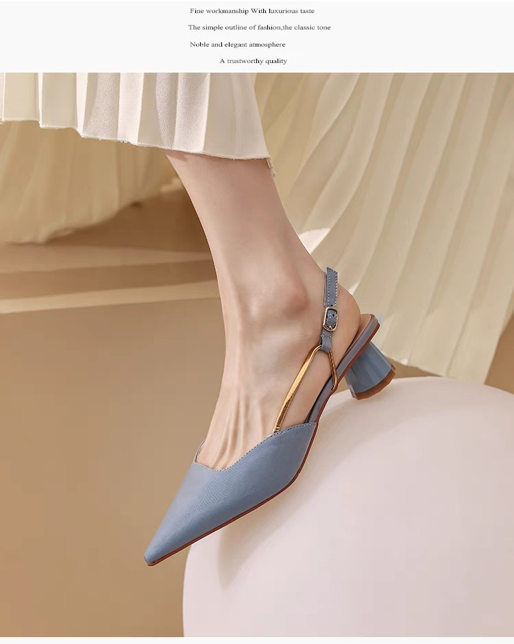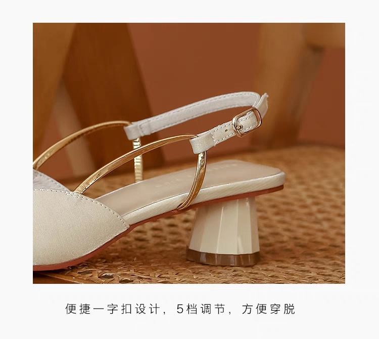 프랑스 스타일 낮은 발가락 샌들 여성의 2024 년 여름 새로운 중간 높이 굽 신발 새틴 우아한 뾰족한 발가락 유행 싱글 레이어 신발