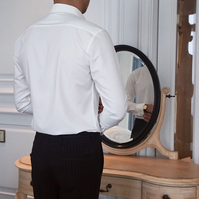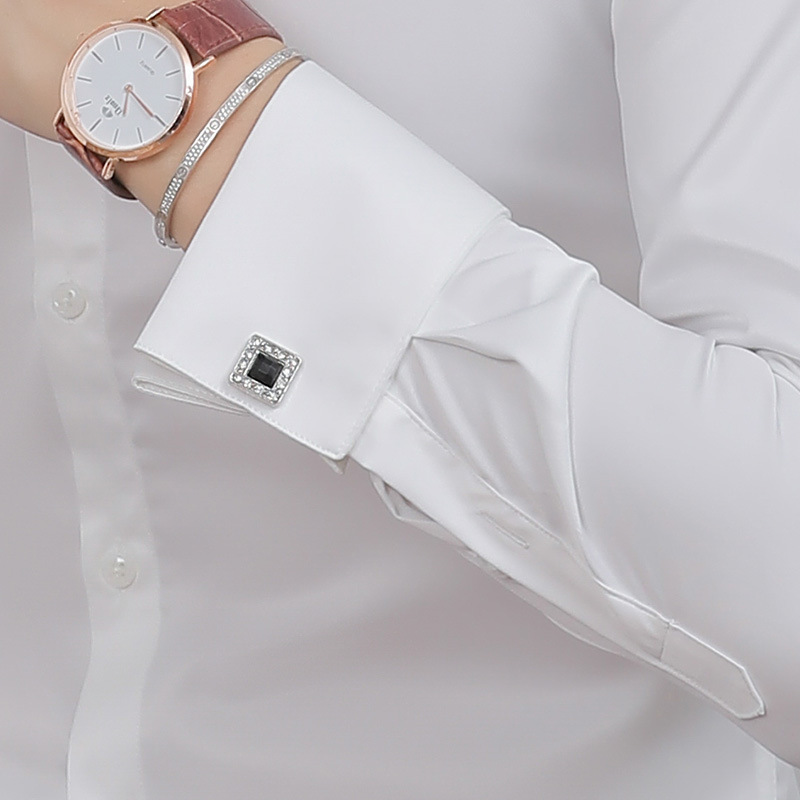 가을 프랑스 버튼 흰색 긴 소매 커프 셔츠 웨딩 비즈니스 원피스 다림질 셔츠 슬림 핏 최고 남성 트렌디스토어 가기