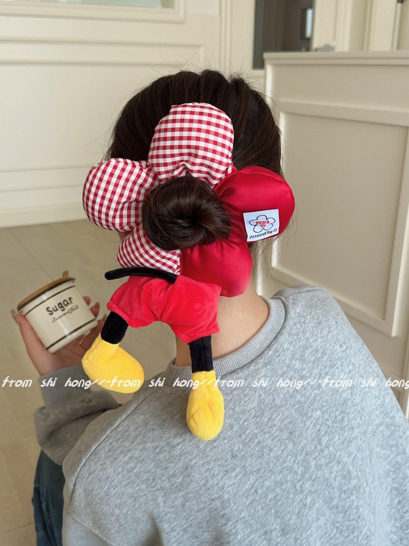 • 붉은 체크무늬 미키 머리끈~업그레이드 버전