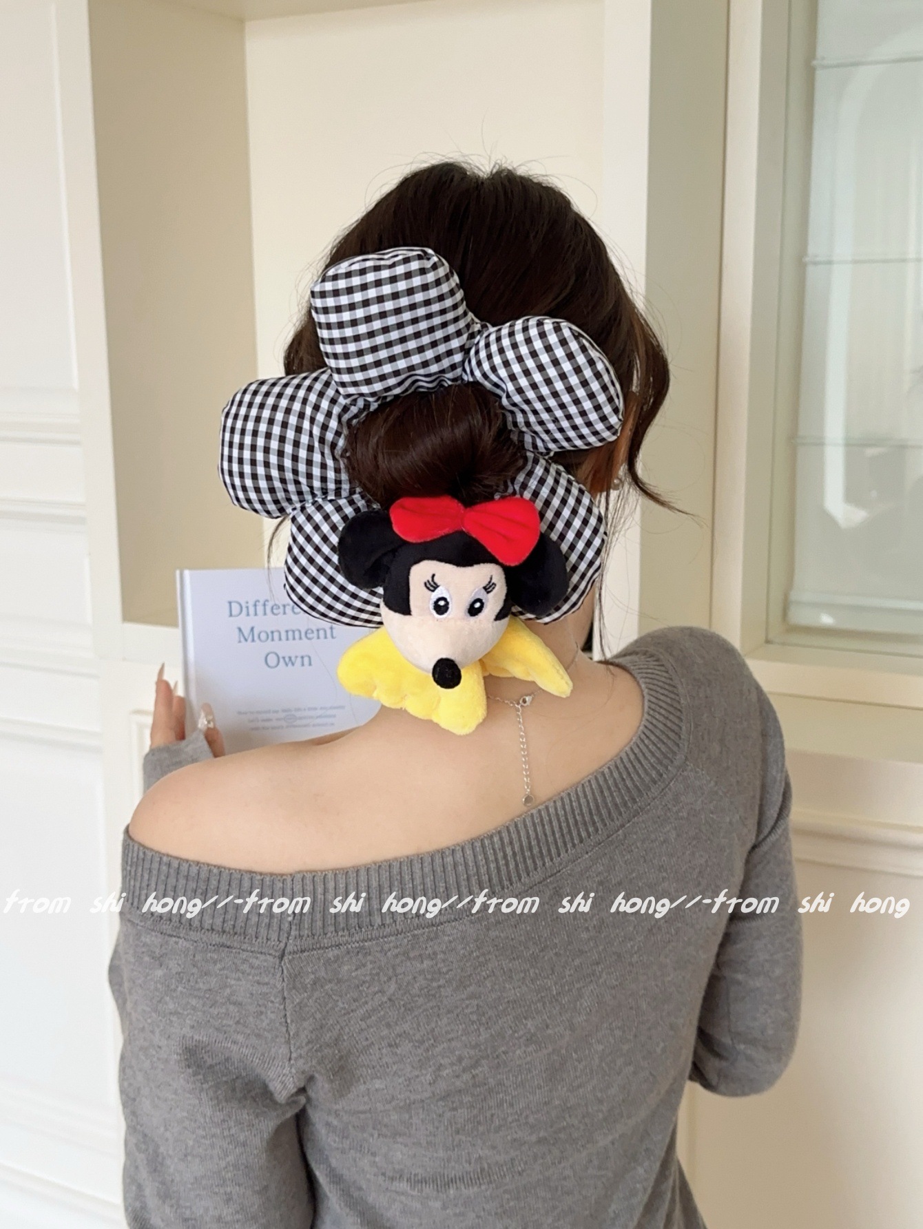 • 블랙 체크무늬 미키 머리끈~업그레이드 버전