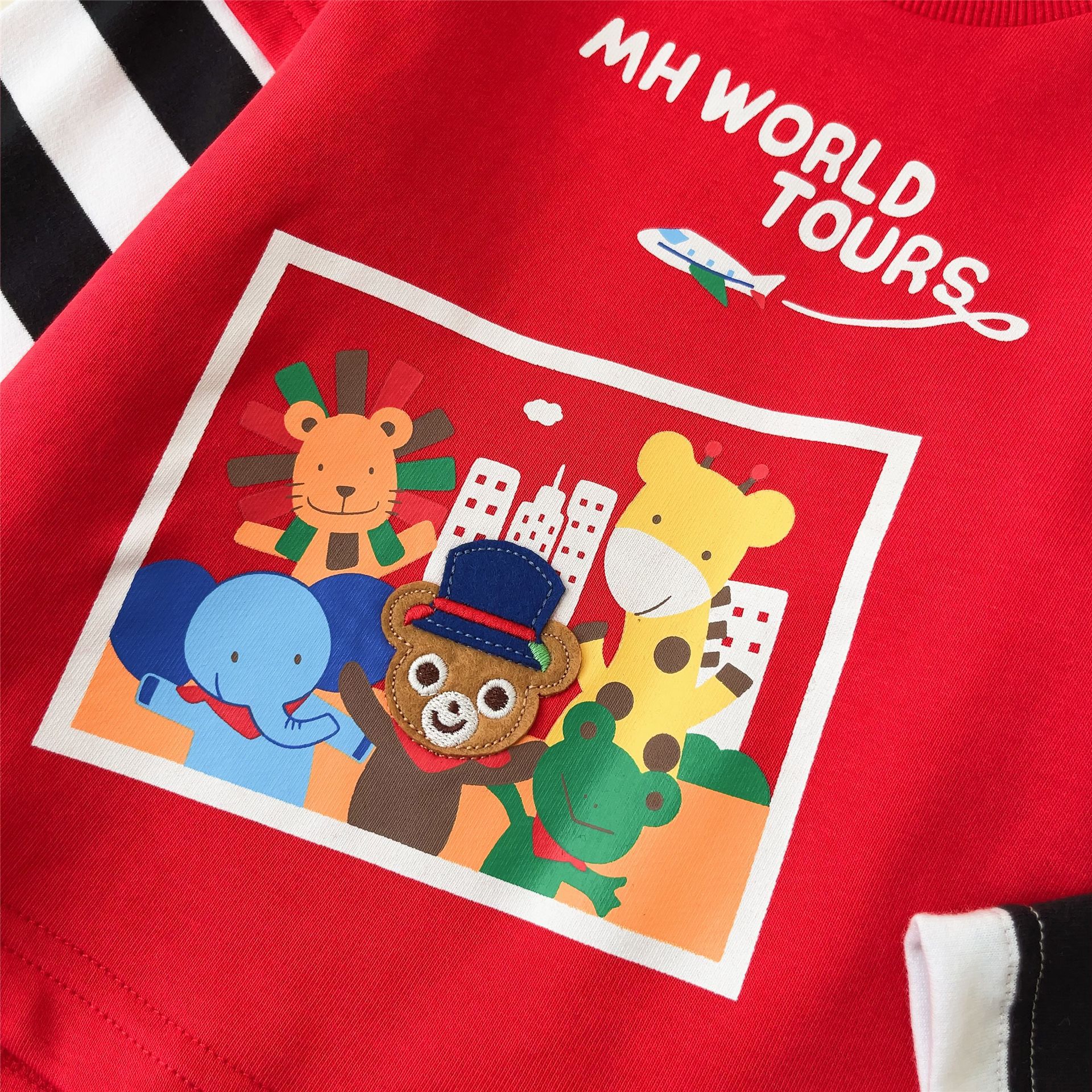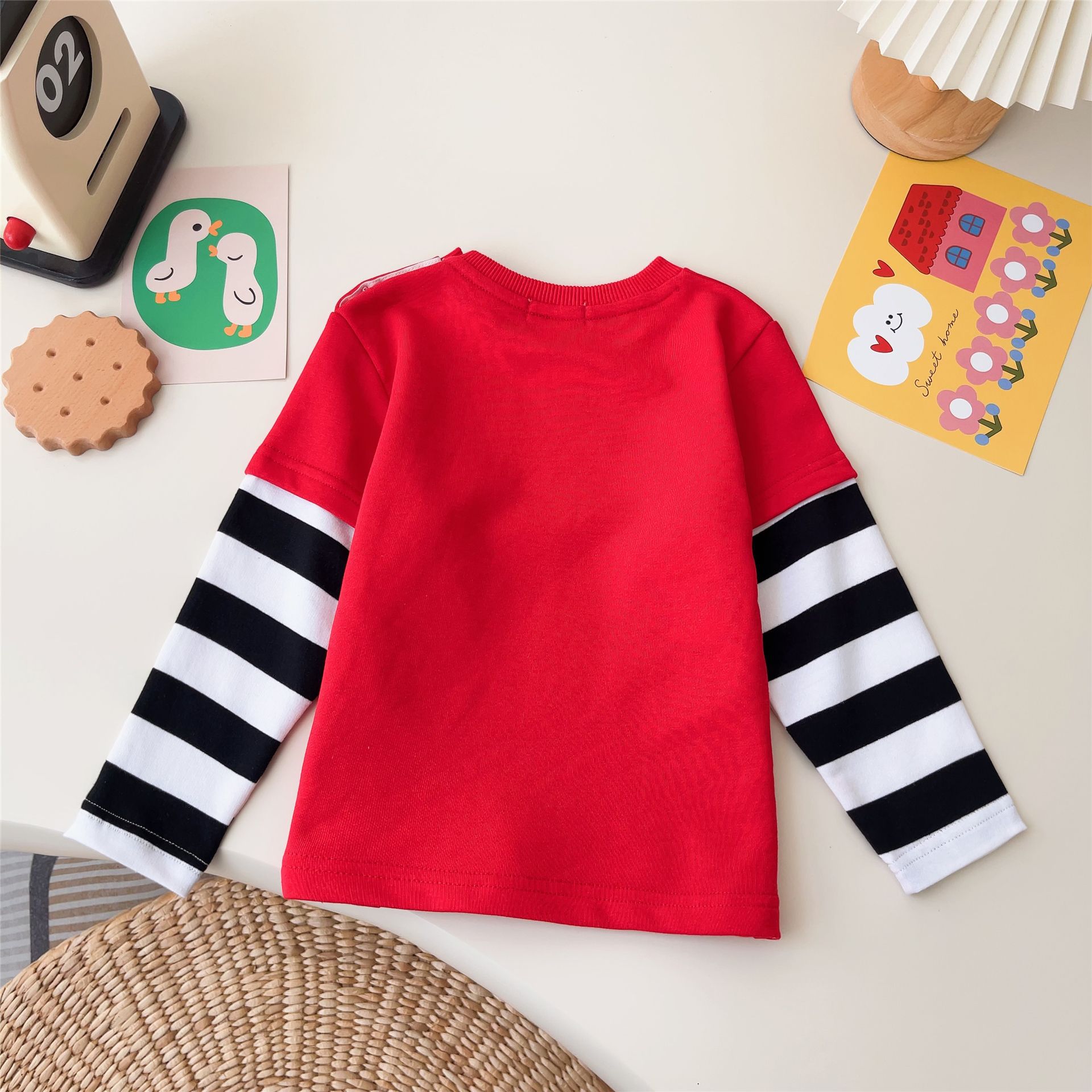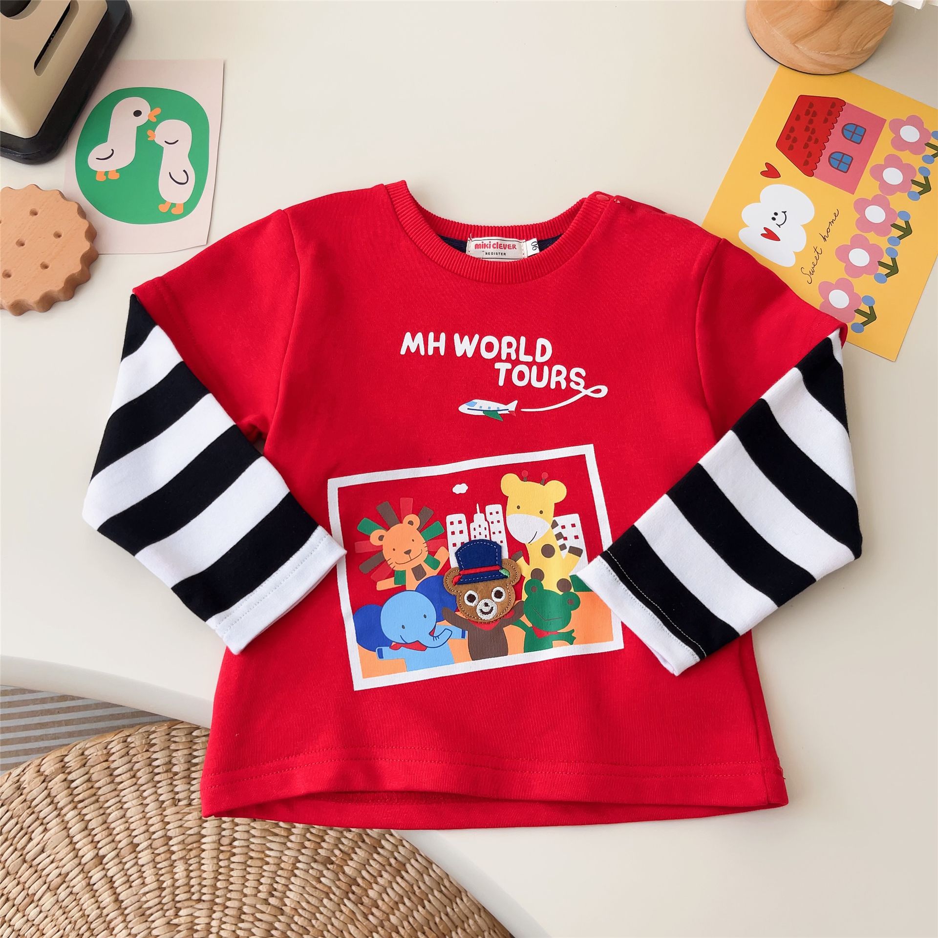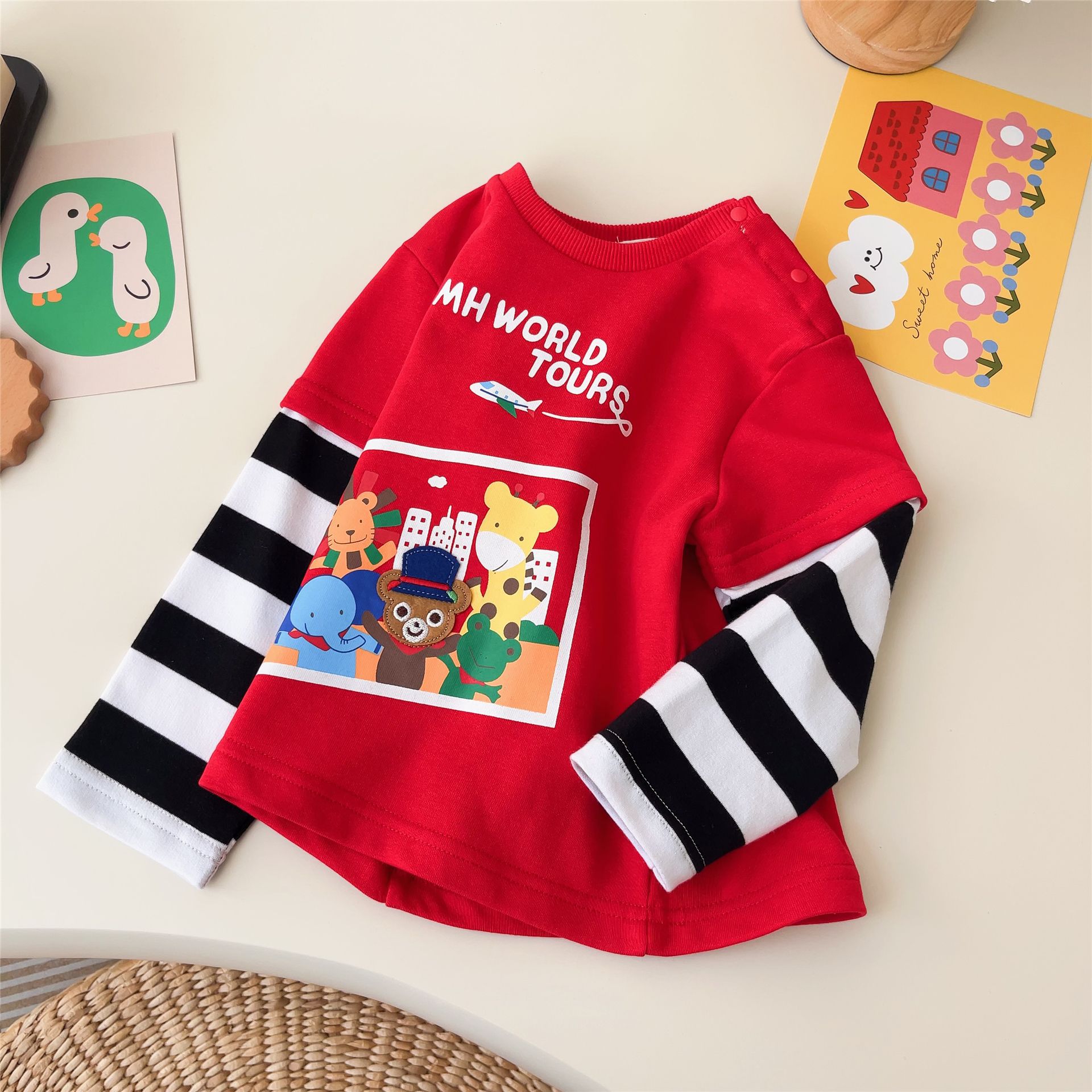 스팟 일본 25 봄 새 시즌 소년 소녀 아기 가짜 투피스 나쁜 공 여행 탑 긴팔 티셔츠 유행 7008