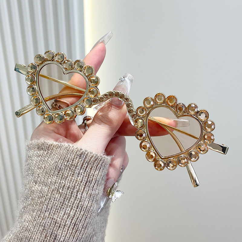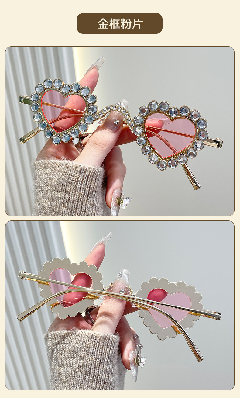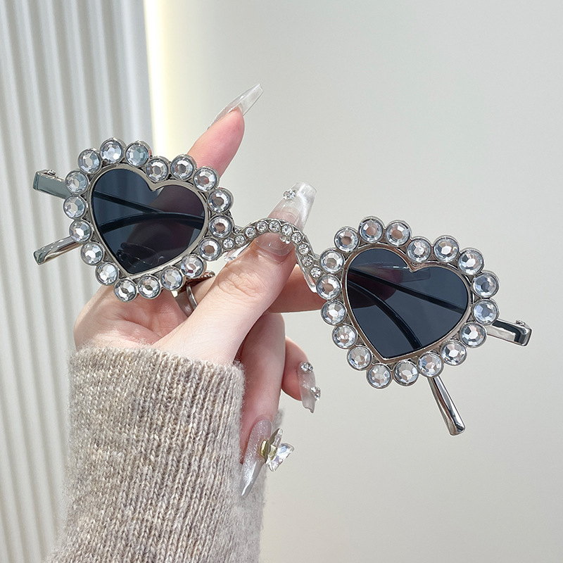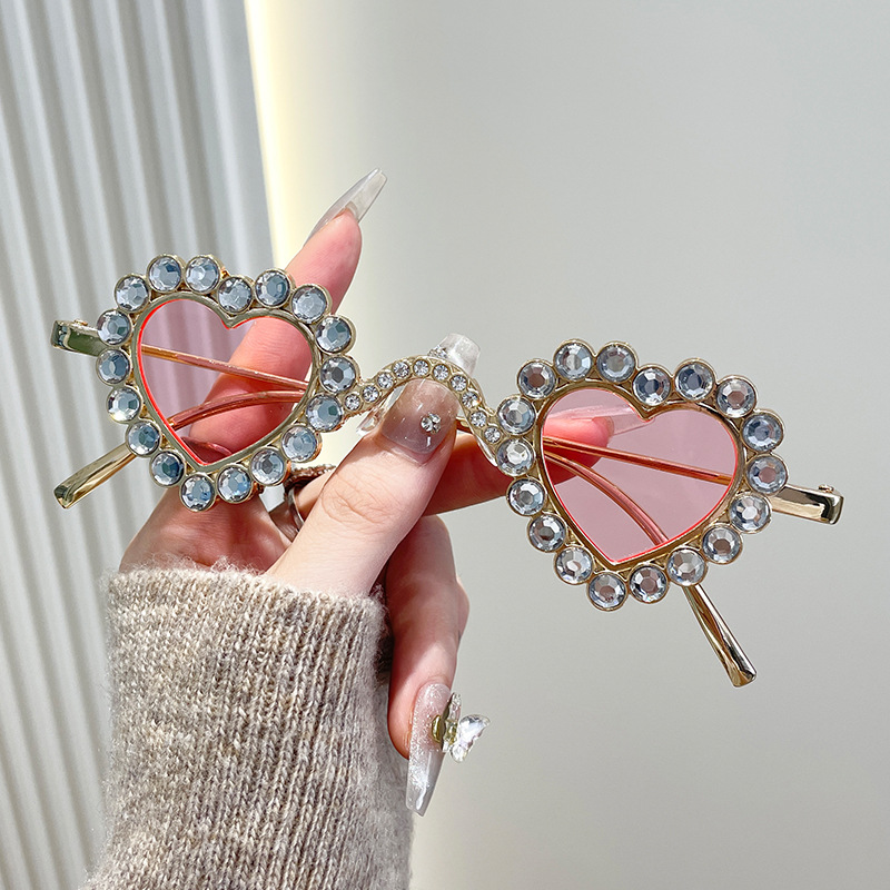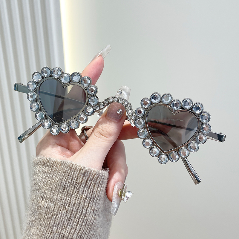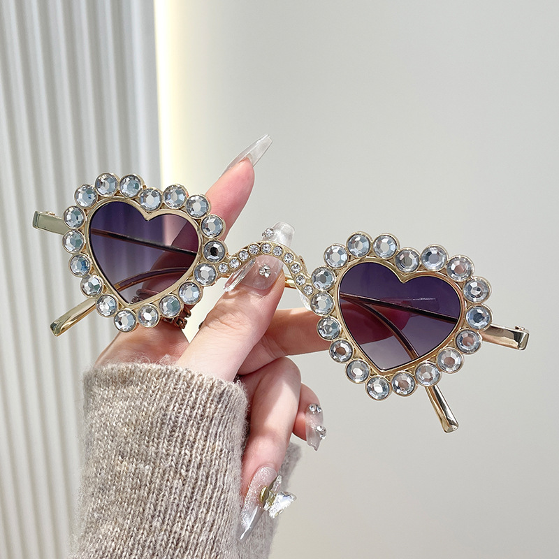 2024 유럽과 미국의 새로운 사랑 다이아몬드 선글라스 맞춤형 하트 모양의 다이아몬드 선글라스 복숭아 심장 여성의 UV 보호