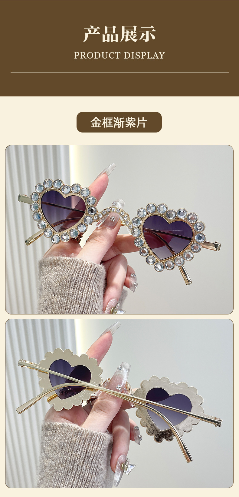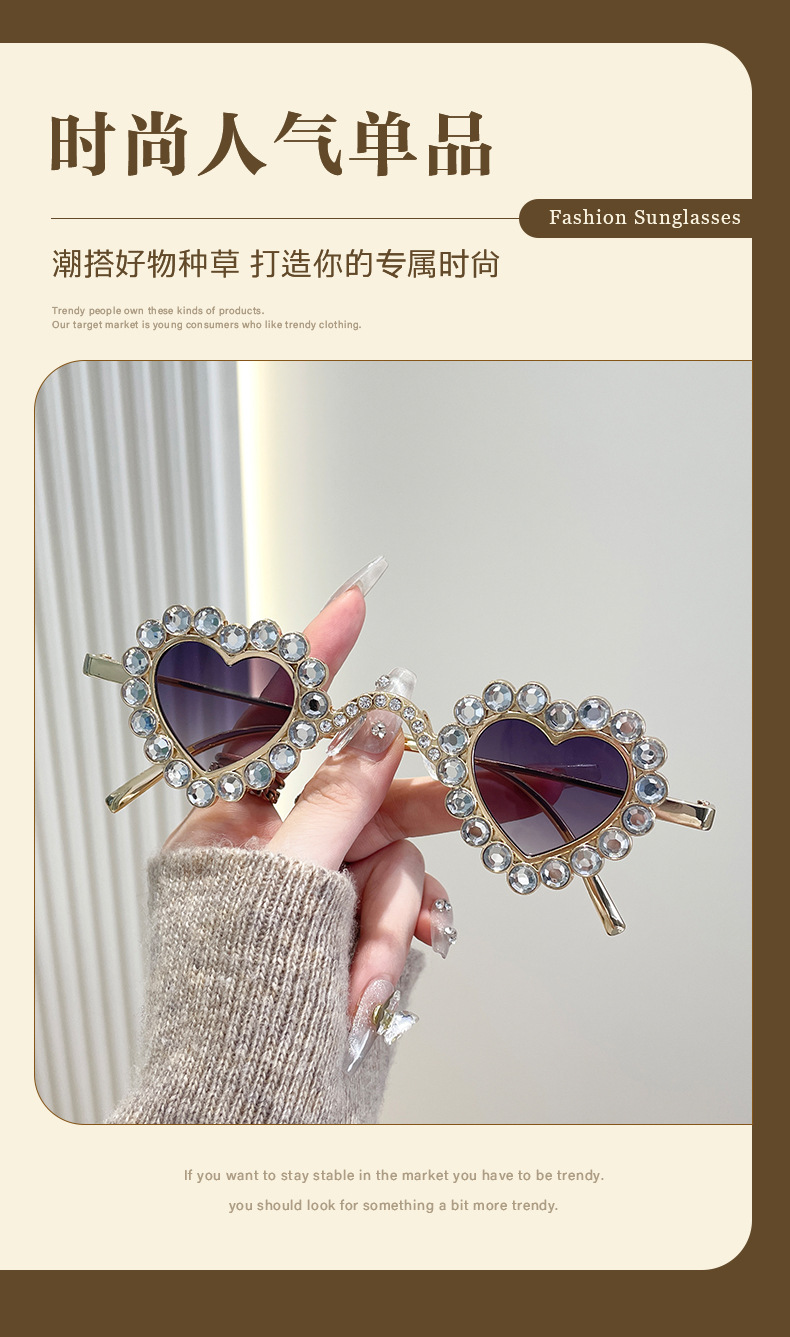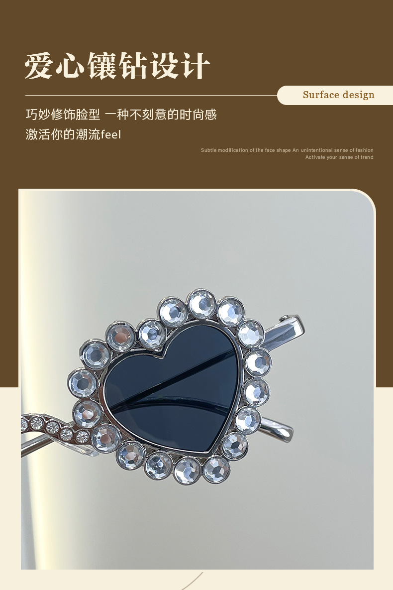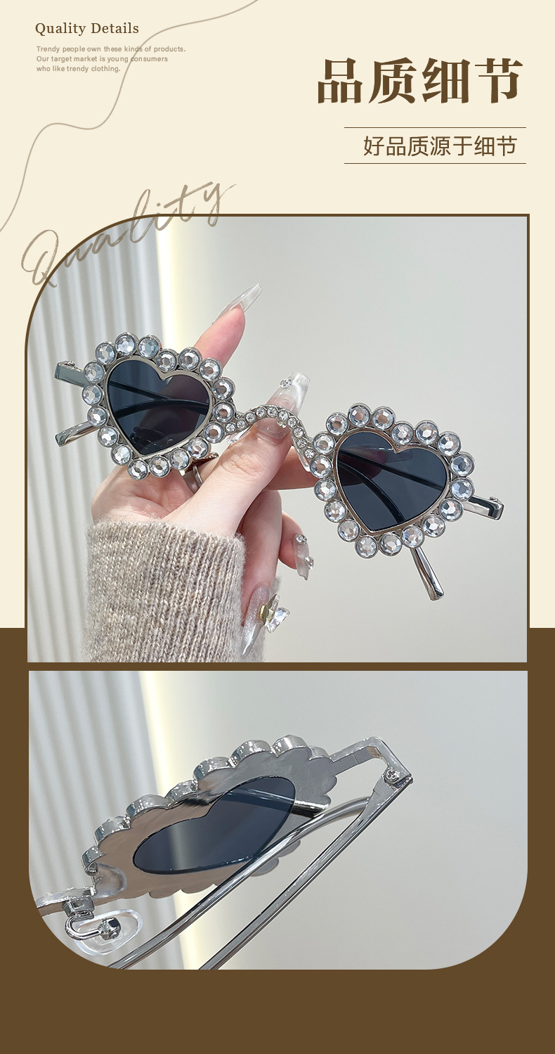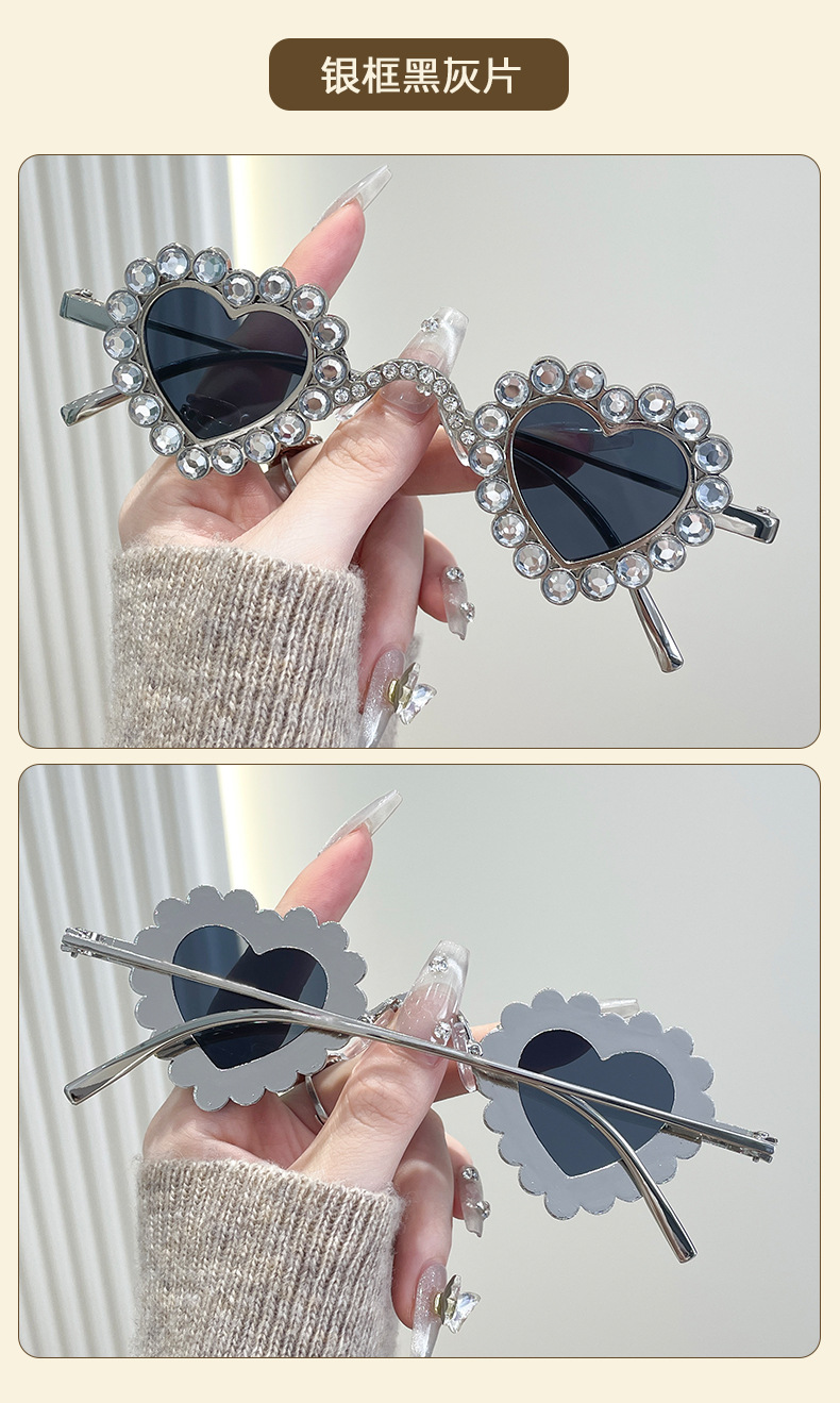 2024 유럽과 미국의 새로운 사랑 다이아몬드 선글라스 맞춤형 하트 모양의 다이아몬드 선글라스 복숭아 심장 여성의 UV 보호스토어 가기