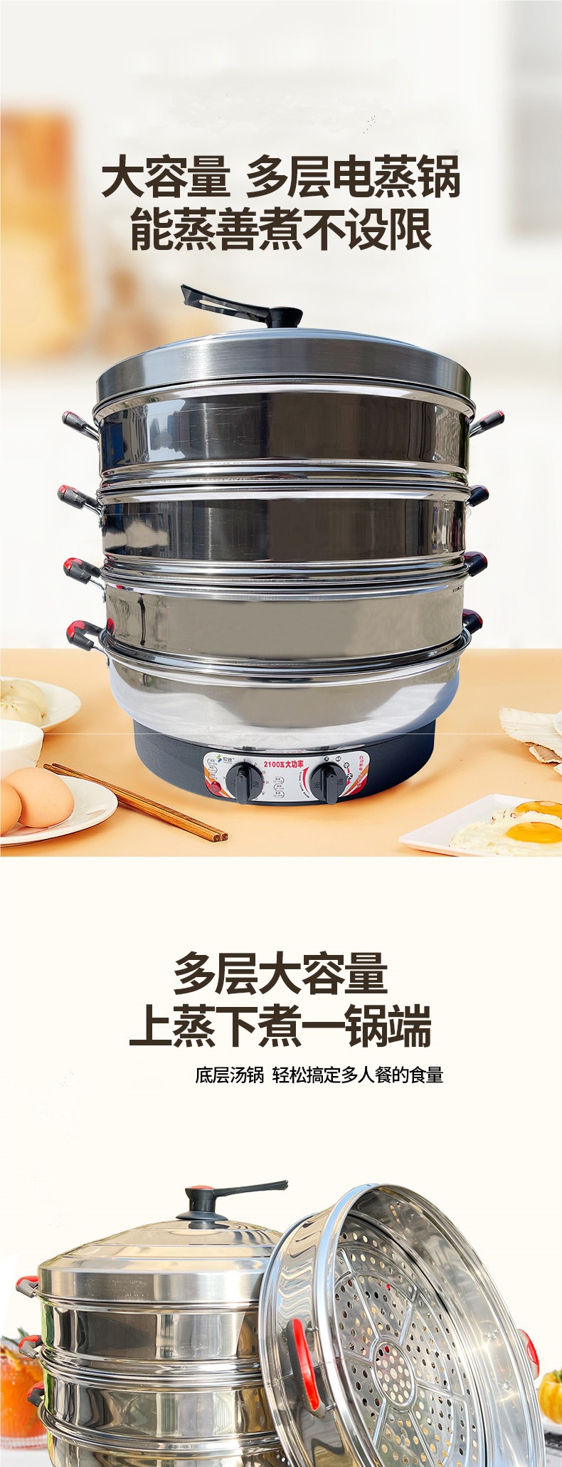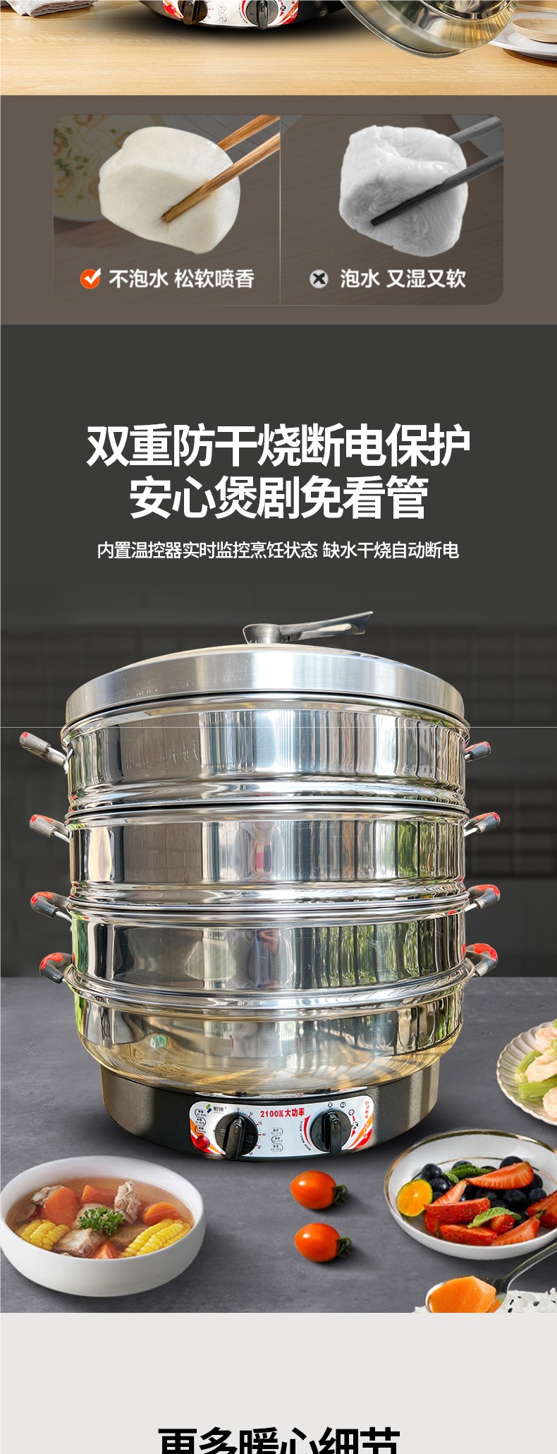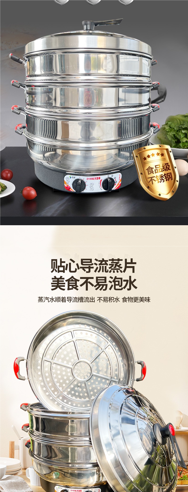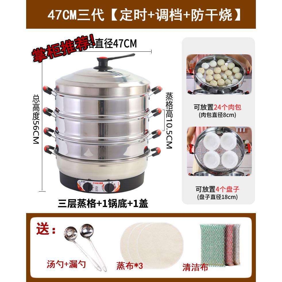 대형 전기 증기선 상업용 플러그 전기 증기선 단열 스테인레스 스틸 자체 구동 증기선 3 층 찐 빵 가정용